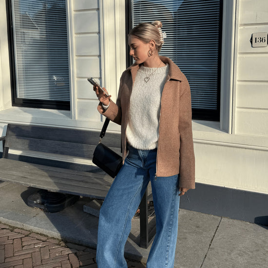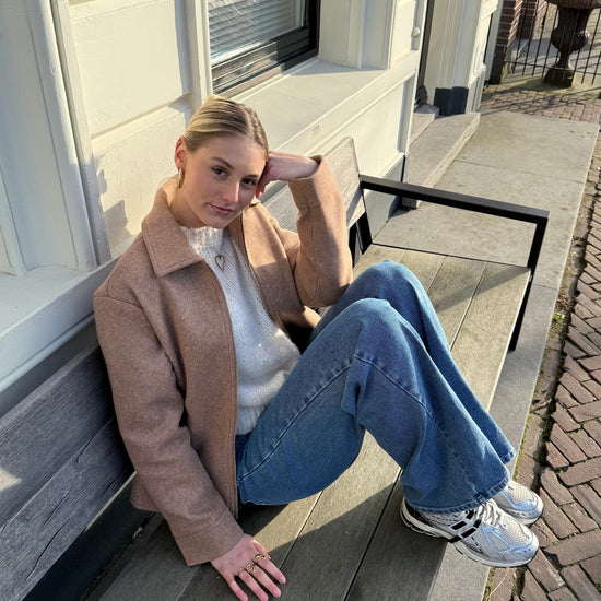 Meet Aya! The jacket is lined and feels wonderfully soft, while the fit is specially designed for tall girls so everything drapes beautifully. The collar and zipper give Aya a bold touch, but the clean design keeps the look feminine and effortless.