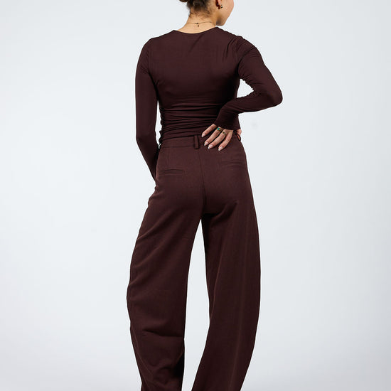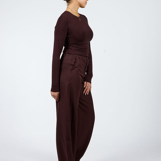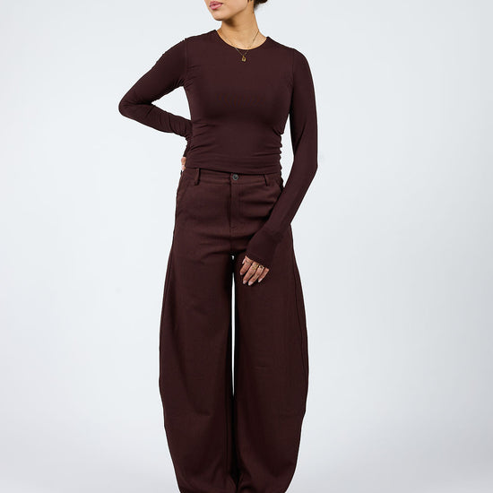 A new eye-catcher! The Bobby Balloon Trousers are the perfect choice for tall girls who love a playful, modern fit without compromising on comfort. The balloon-shaped legs create a trendy, full yet elegant effect, while the high waist provides a flattering silhouette. This dark brown version has a burgundy undertone.