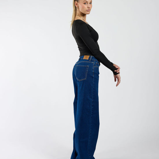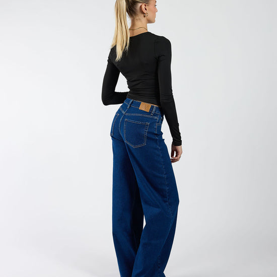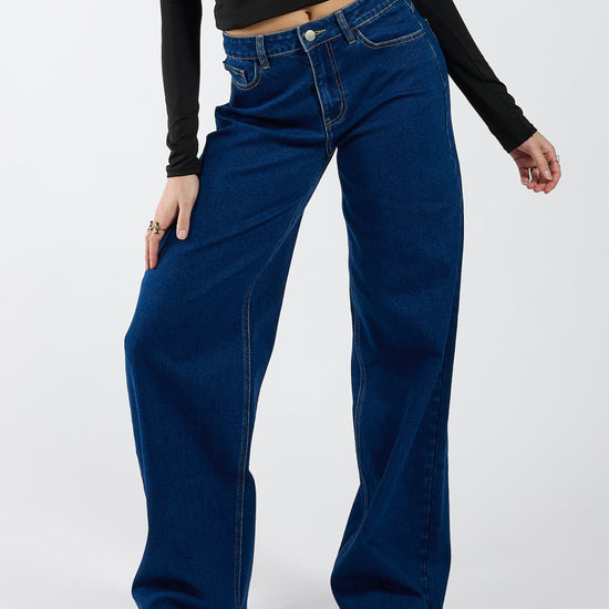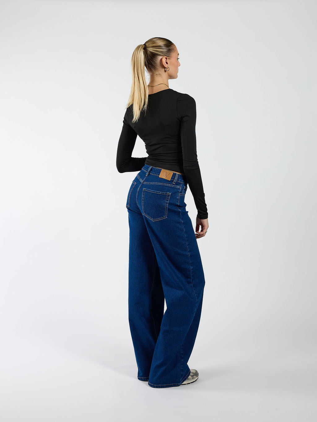 Indy | Mid Waist Wide Leg Jeans | Dark blue | Stretch | Tall