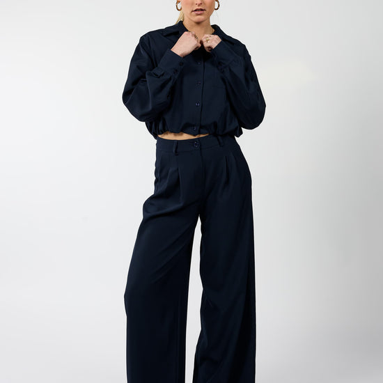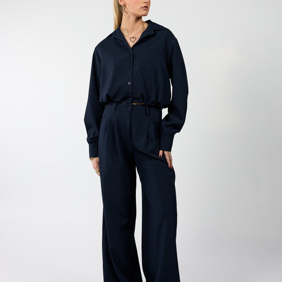 Jip | Wide-leg trousers with pleats | Navy | Tall