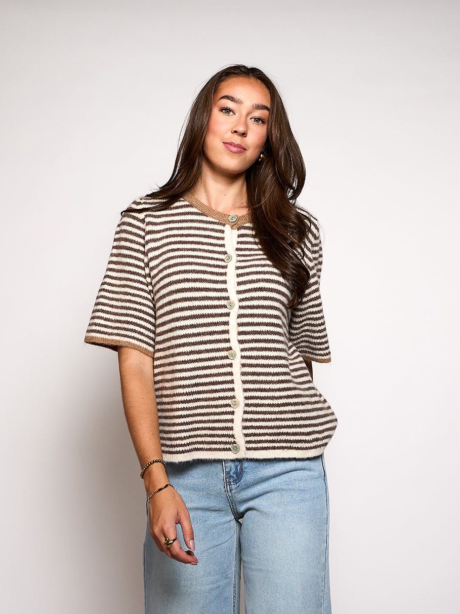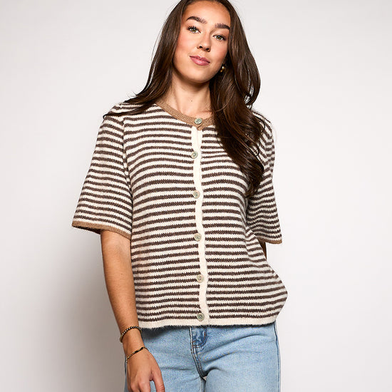 Lena Knitted Cardigan with Buttons | White brown striped | Tall
