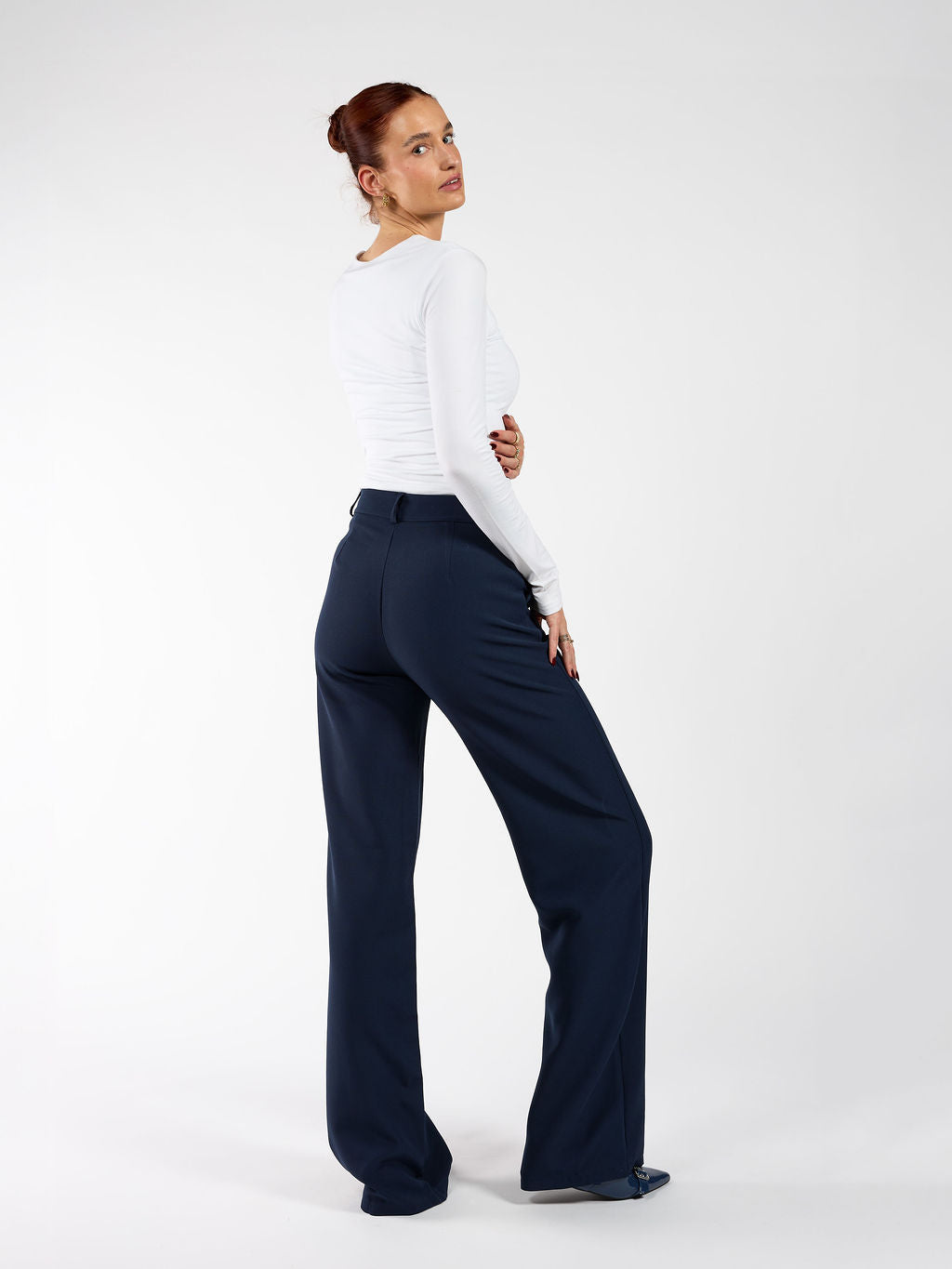 These trousers combine style with comfort. The straight leg and high waist give them a classy look. Made from a soft, flowing fabric with a slight stretch, which moves beautifully with you. Wear as a set with the matching blazer or separately with a casual top. Available in multiple colours.