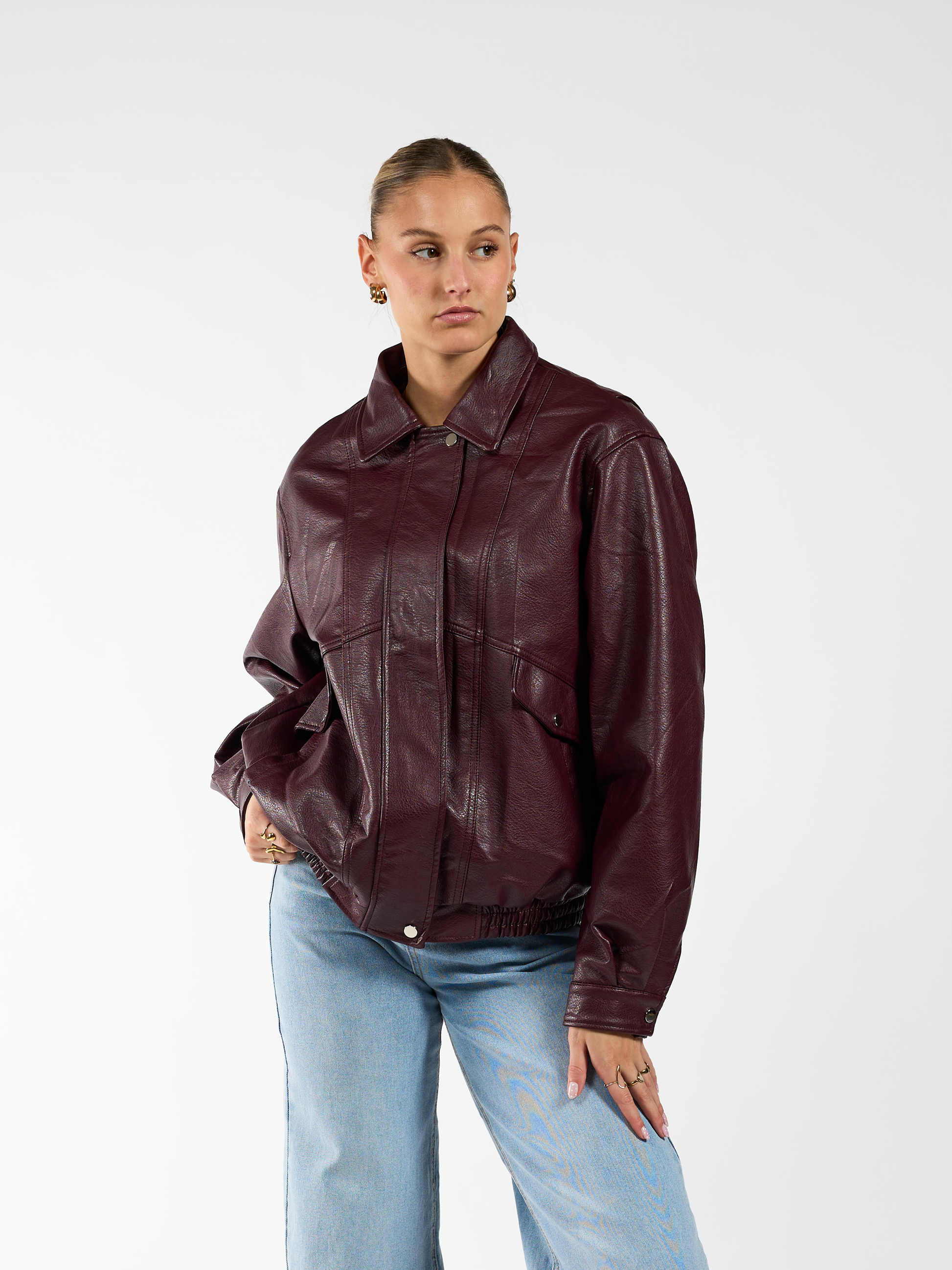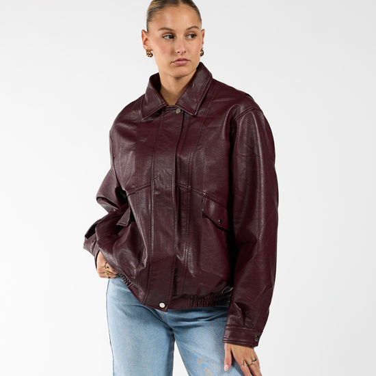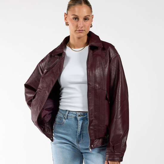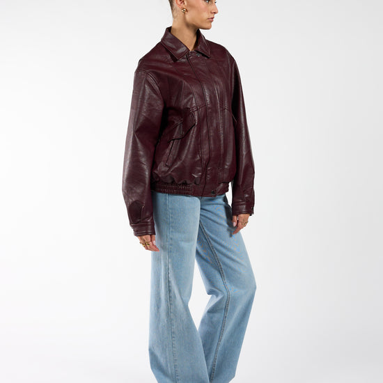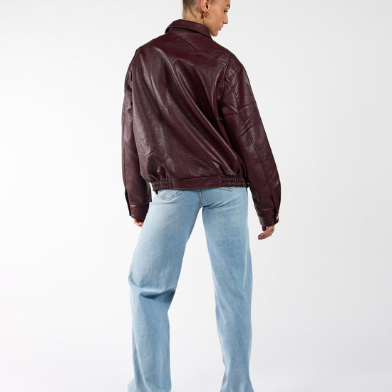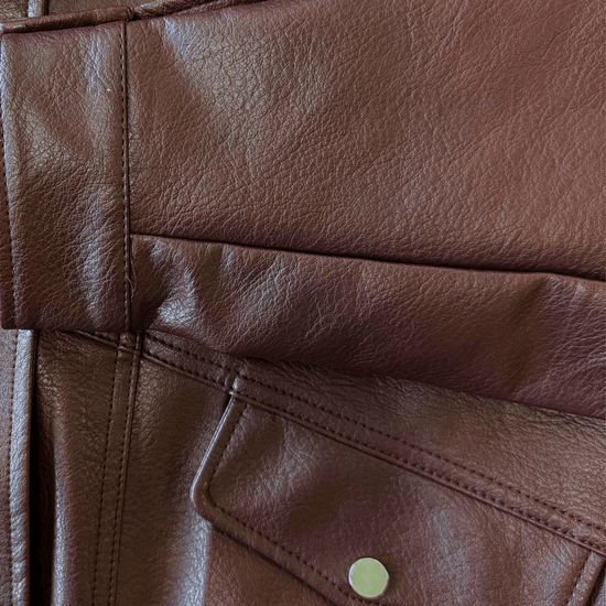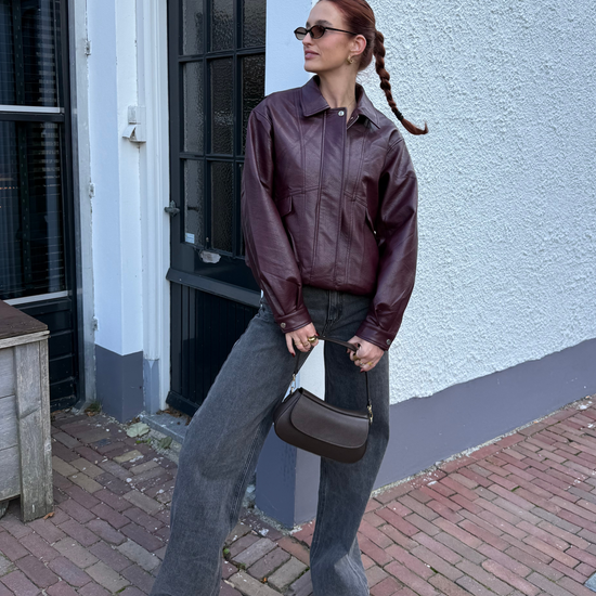 The Loua Leather Jacket is a bold statement piece for tall girls. This leather jacket features an oversized fit, extra-long sleeves, and an elasticated waistband at the bottom for a flattering silhouette. The pockets add an edgy touch, making it not only stylish but also practical. Available in dark brown, black, and burgundy red, you're sure to find the perfect match for your style. A timeless piece that elevates any outfit!
