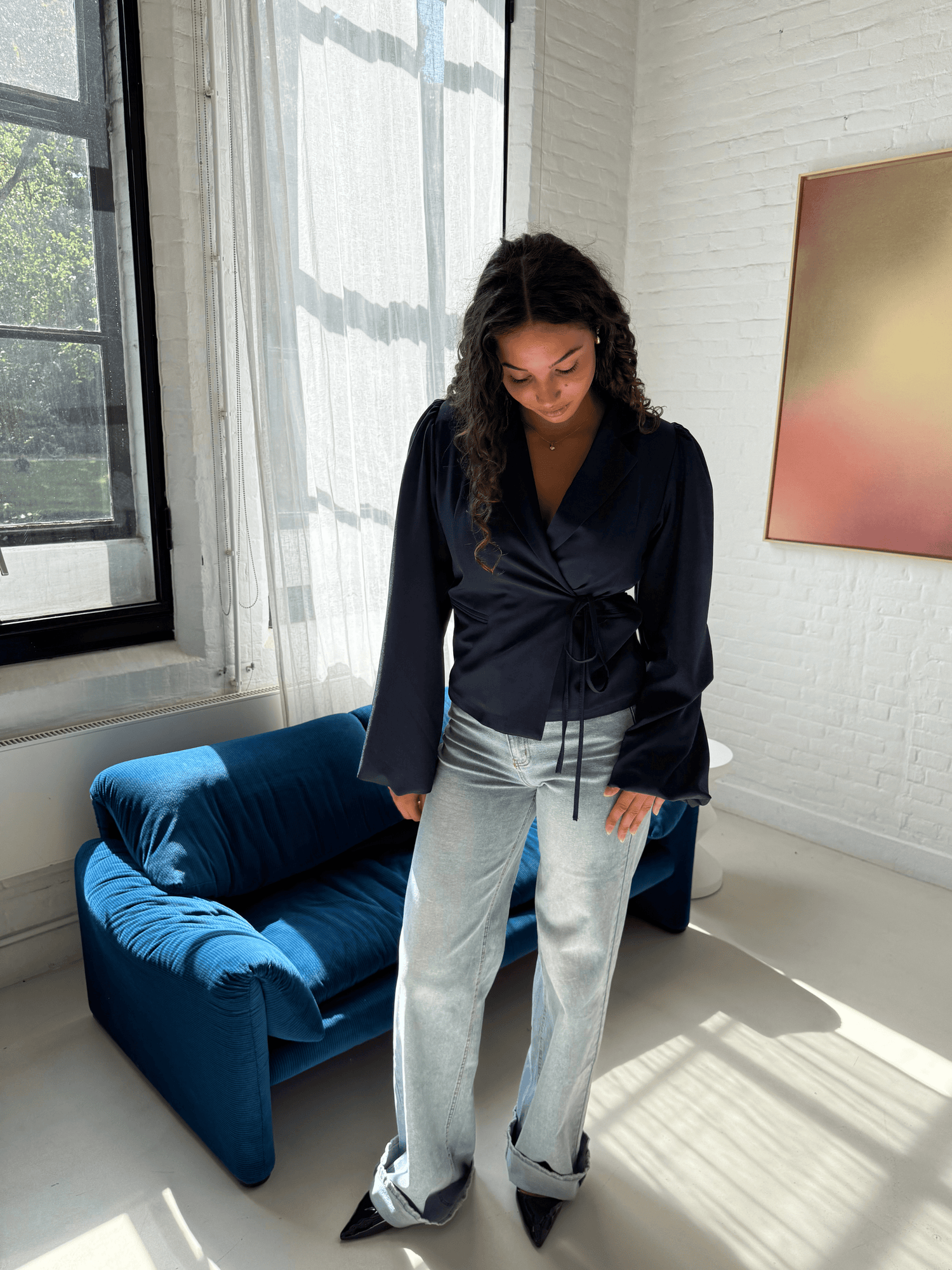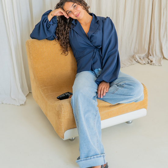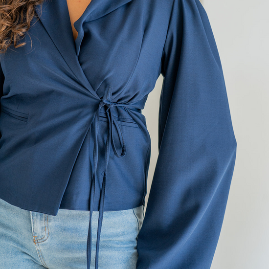 Mara wrap blazer | puff sleeve | navy