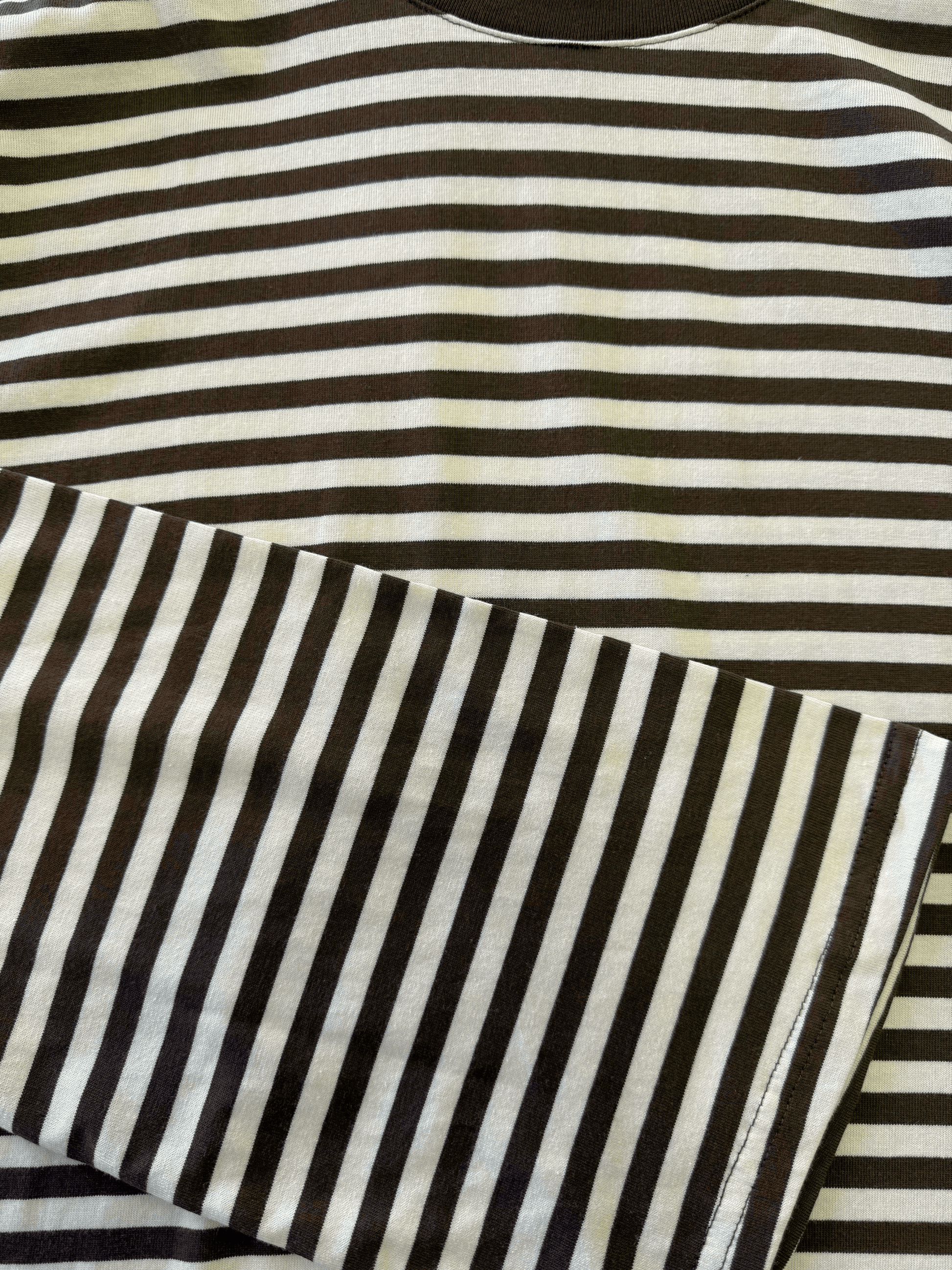 Nine Tee | Wide-sleeved | Striped cream brown | Tall
