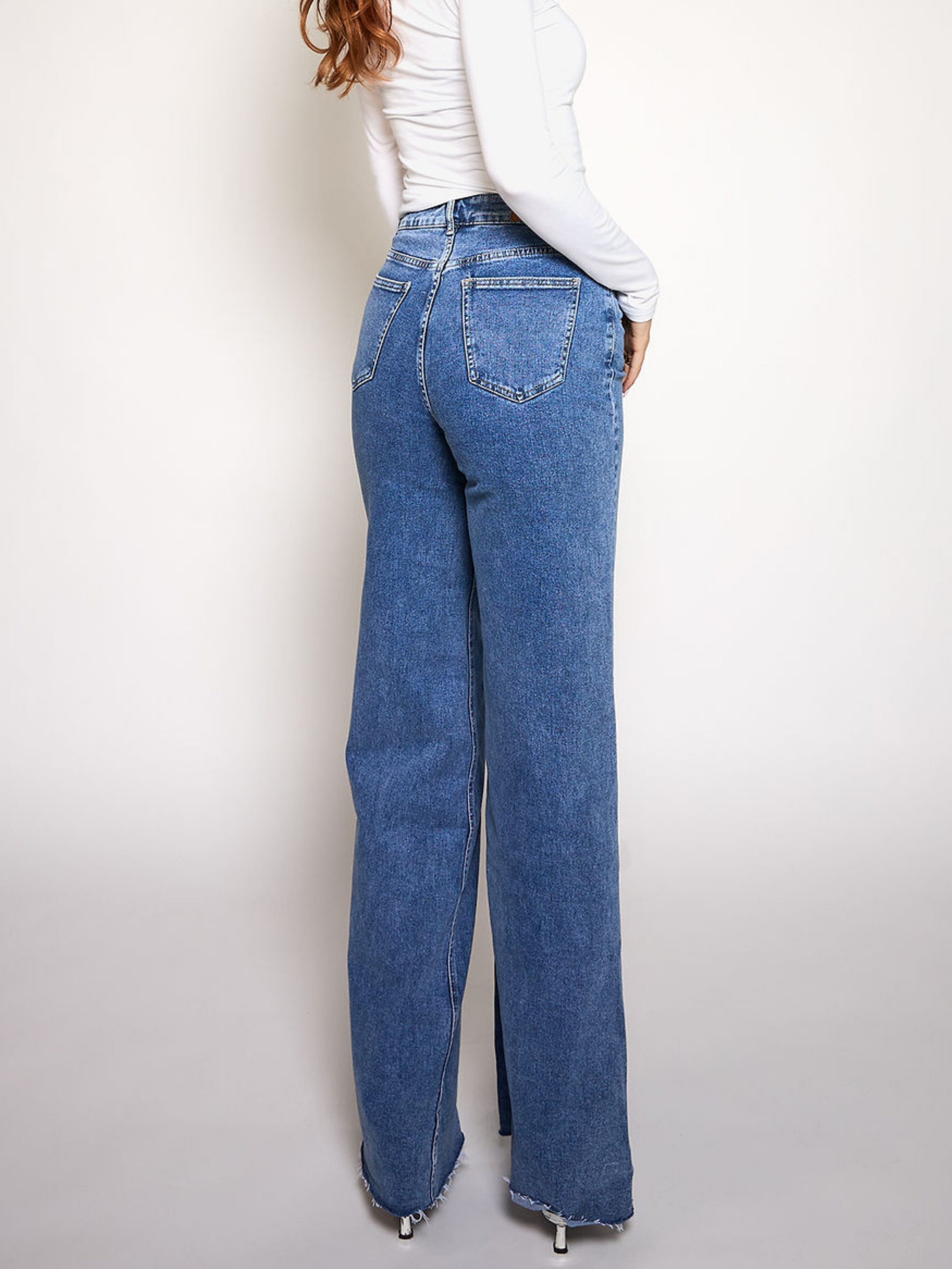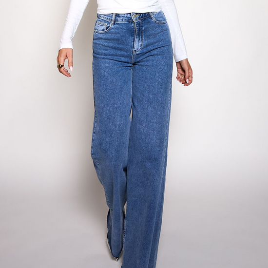 These blue Tall Super Wide Leg Jeans with stretch are the perfect jeans for your everyday look! Are you tall? We got you! These pants can be worn from 1.75 to 2.00m. The tall jeans are available in length size 36 and length size 38.