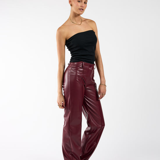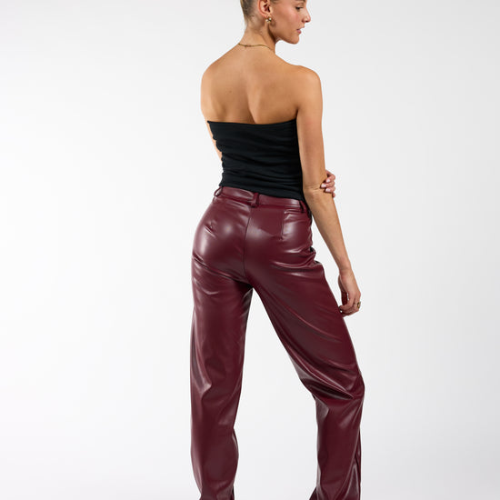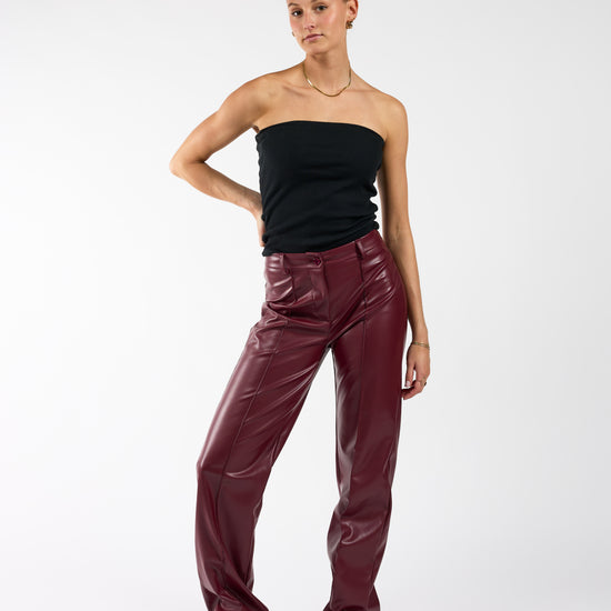 De perfecte PU pants voor lange meiden tussen 1.75m en 2.00m. Deze straight leg broek heeft een clean look zonder zakken, een subtiele pressfold op de voorkant en sluit met een rits en knoop. Dankzij de PU-stof krijgt je outfit direct een luxe uitstraling en kun je de broek eindeloos combineren, of je nu gaat voor een casual look met sneakers of een chique uitstraling met hakken. Een echte wardrobe essential die niet mag ontbreken in jouw kledingkast.