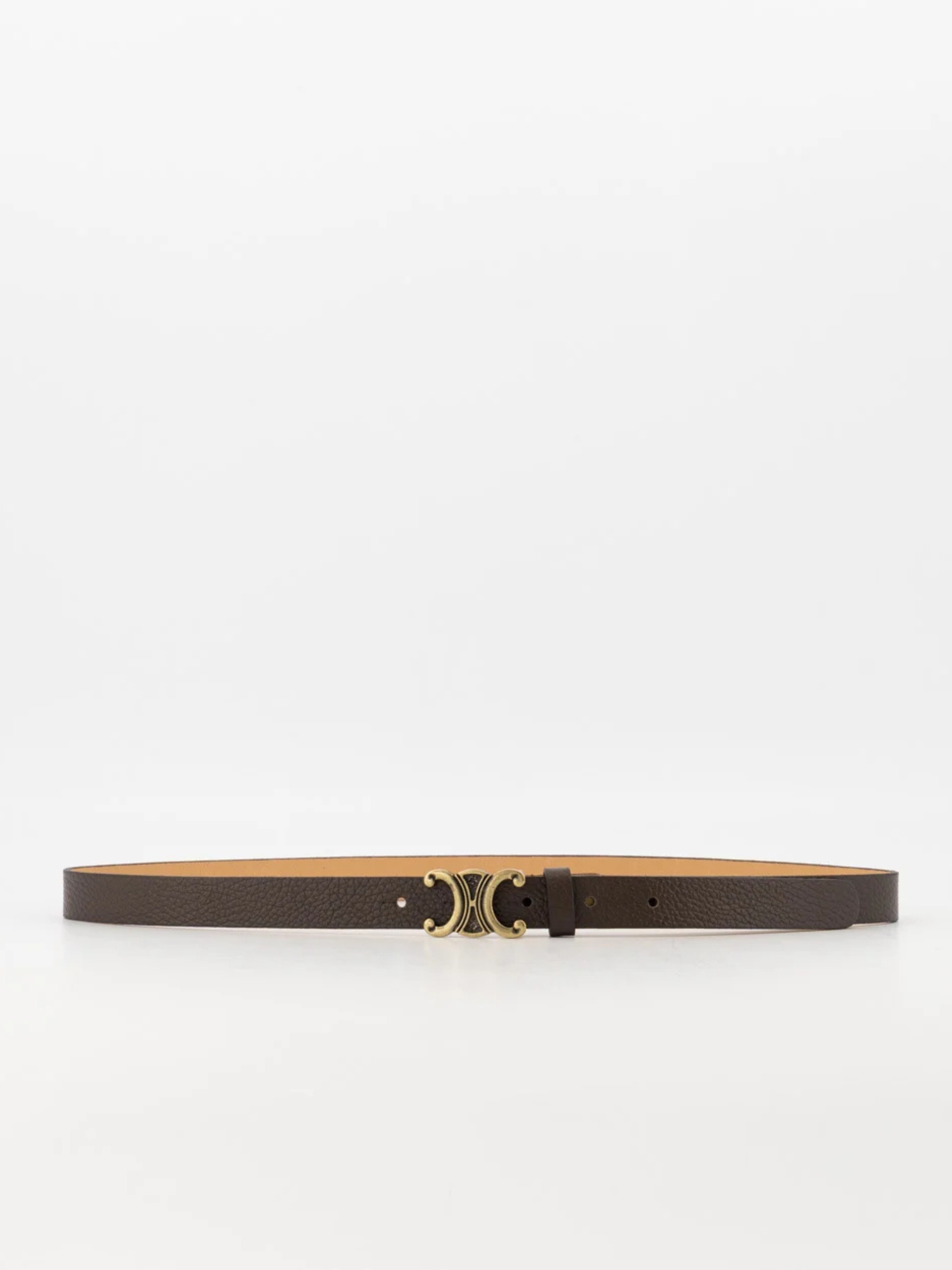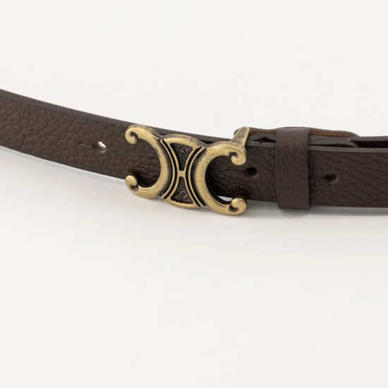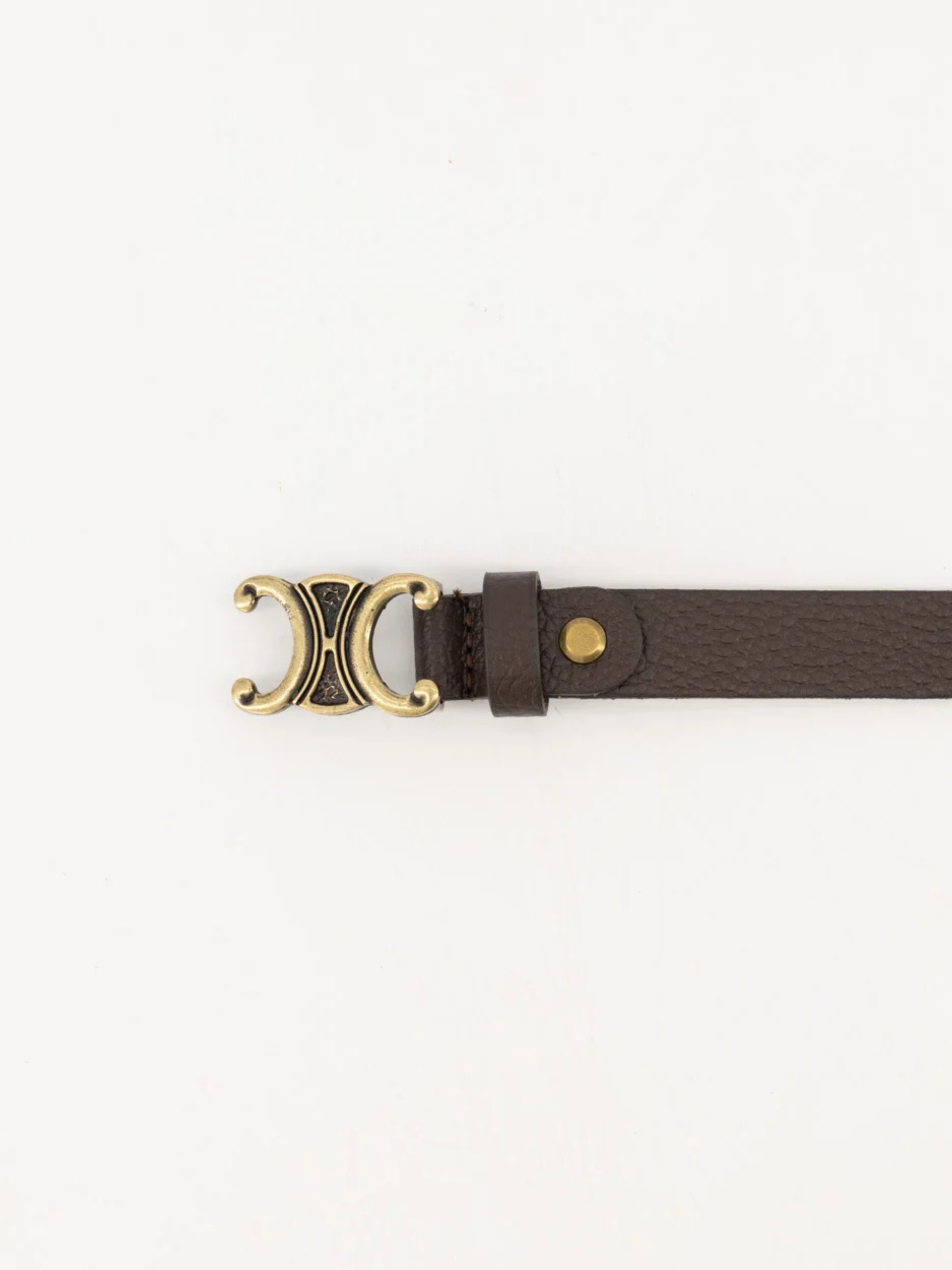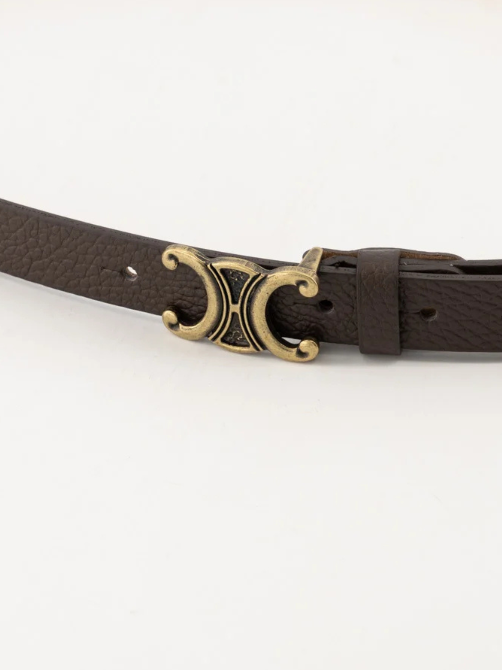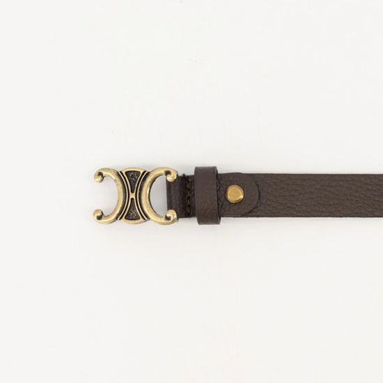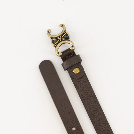 De riem is gemaakt van genuine leer en is 2,5 cm breed. De riem heeft een goudkleurige gesp en is verkrijgbaar in de maten 85 en 95. De riem is in te korten door middel van een schroef op de kop.
