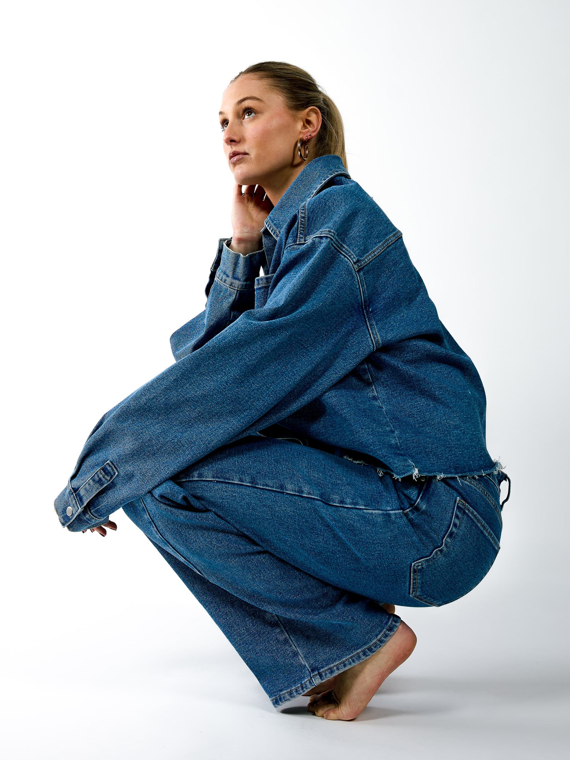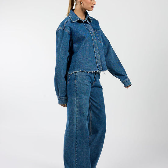 New co-ord set! De Indy Denim Jacket is de perfecte match bij de Indy jeans en maakt jouw denim co-ord look helemaal af. Dit jacket heeft een boxy fit met extra lange mouwen, een kraag en een borstzak. De drukknoopsluiting zorgt voor een easy en comfortabele fit. De rafelige afwerking bij de zoom geeft het jasje een speelse, nonchalante touch.