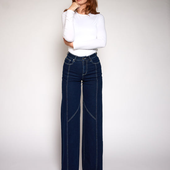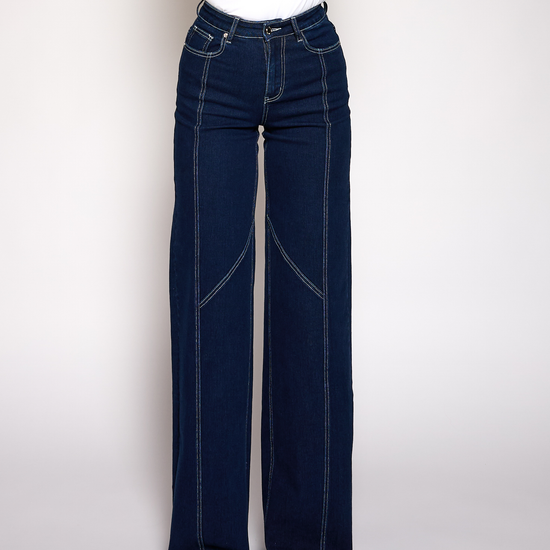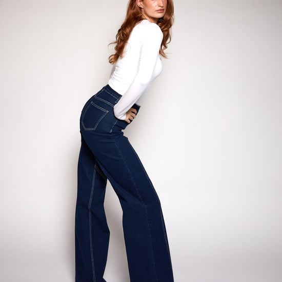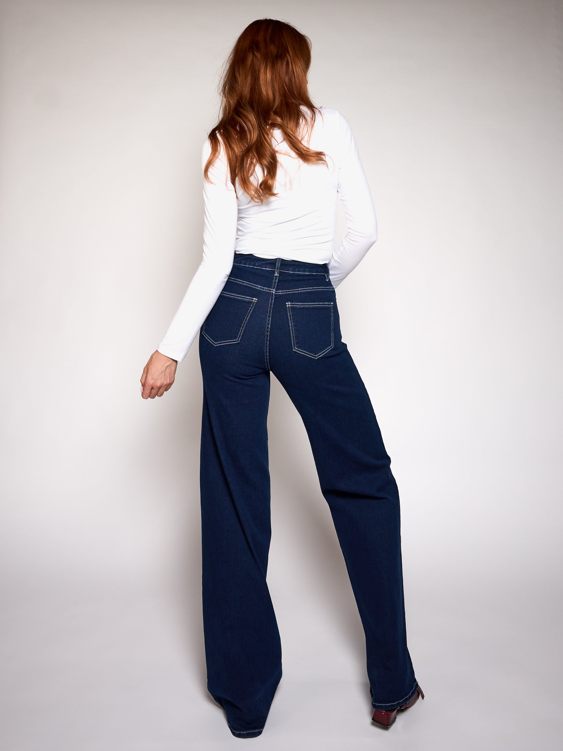 Iza | Super Wide Leg Jeans | Stretch | Donkerblauw | Tall