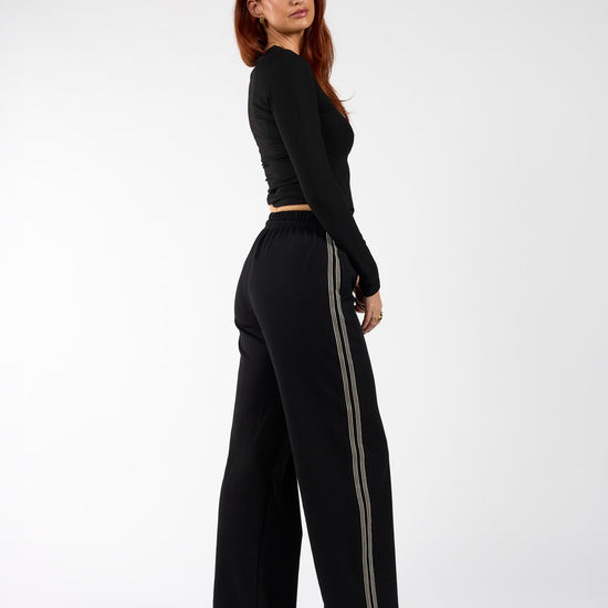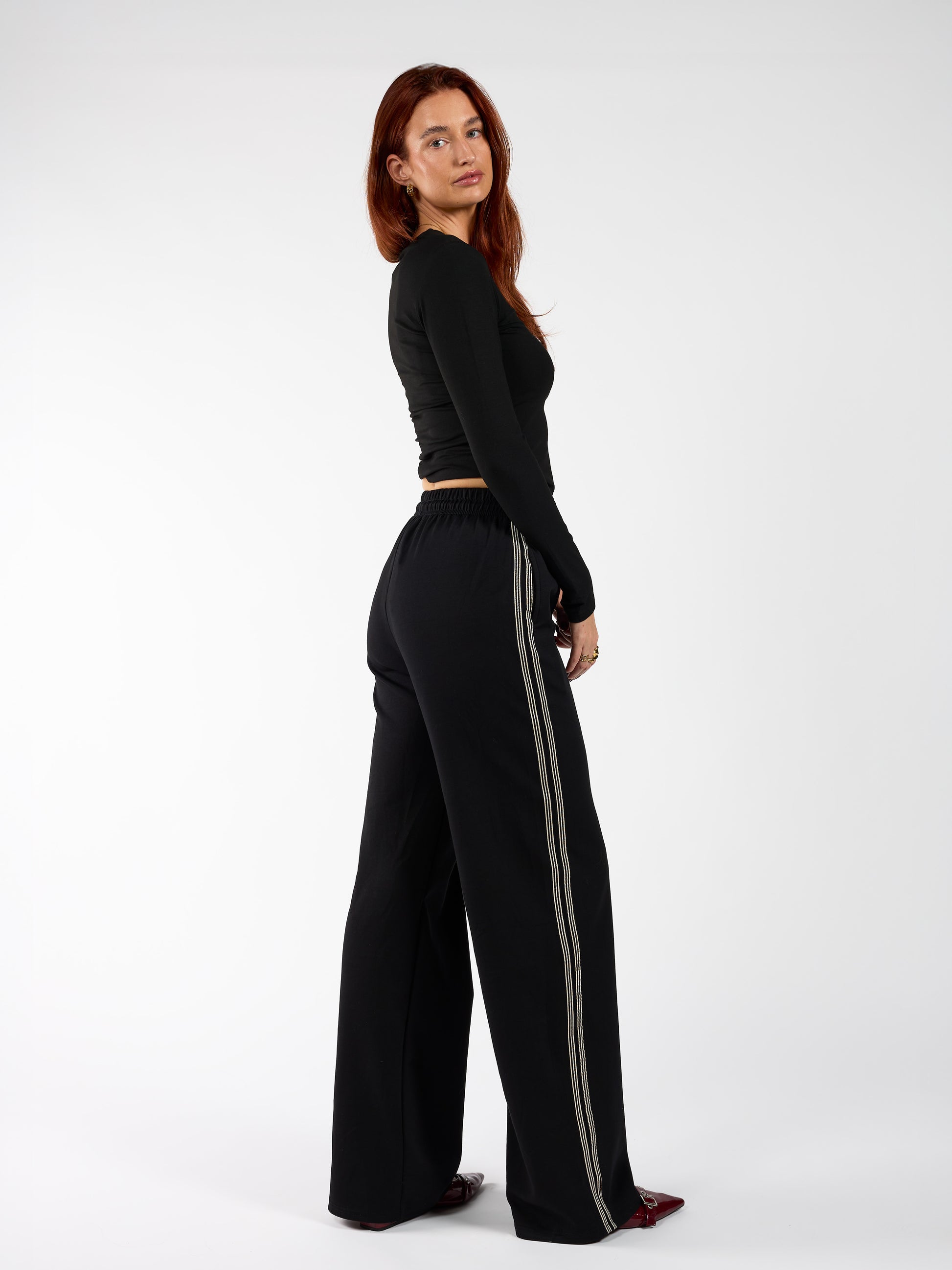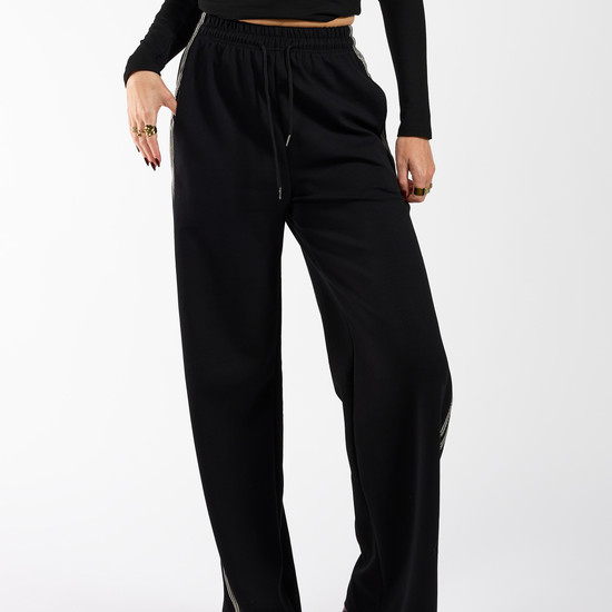 Tall girl approved 🖤 Deze zwarte comfy pants is dé perfecte mix van sporty en comfy. Met de rechte fit en de strepen langs de zijkant creëer je een tijdloze look die je eindeloos kunt combineren. Speciaal ontworpen voor lange meiden tussen 1.75m en 2.00m zodat de pasvorm altijd perfect is. Een klassieker die in geen enkele kledingkast mag ontbreken!