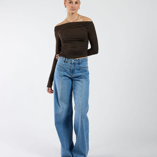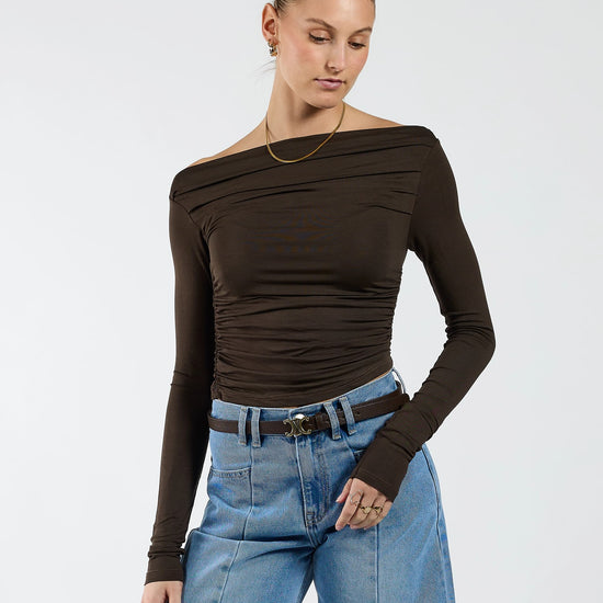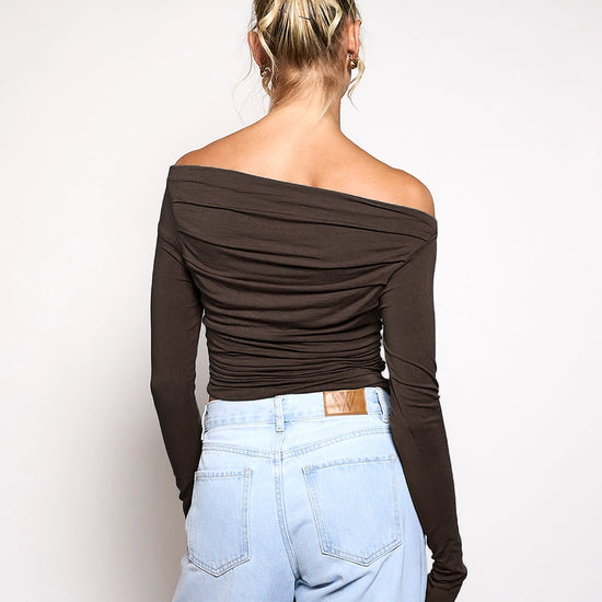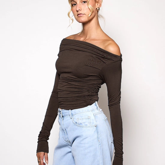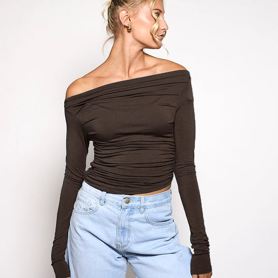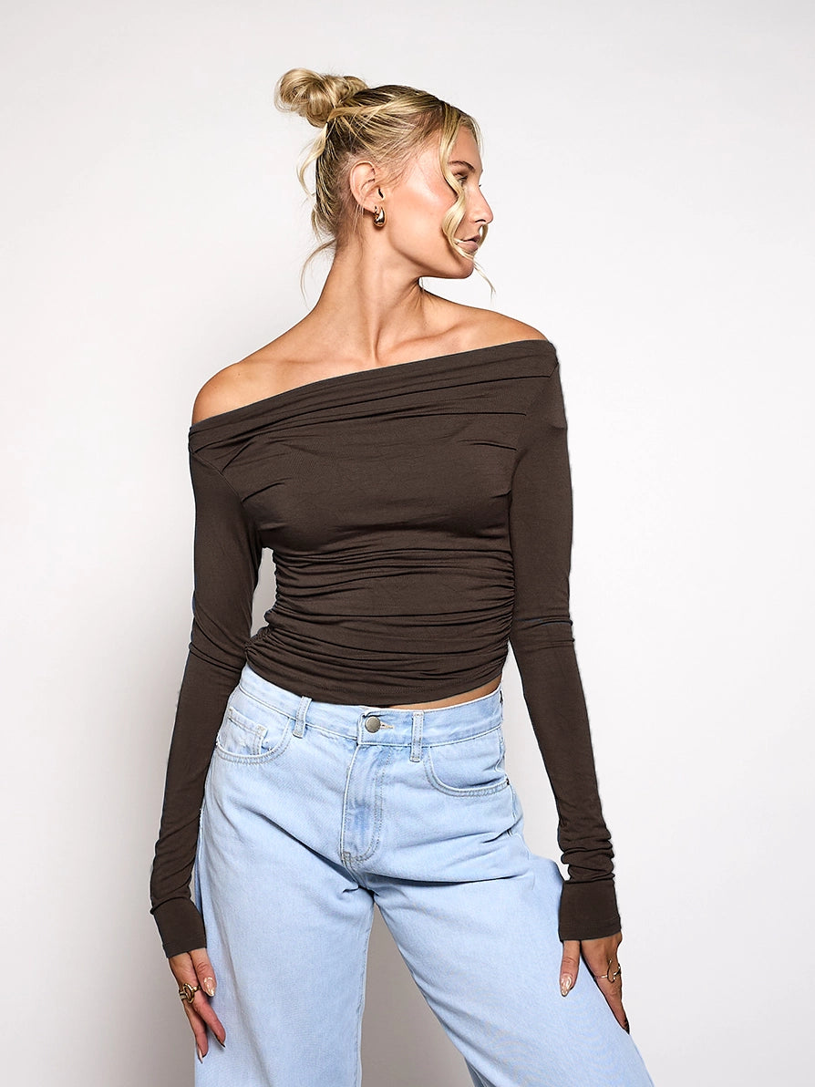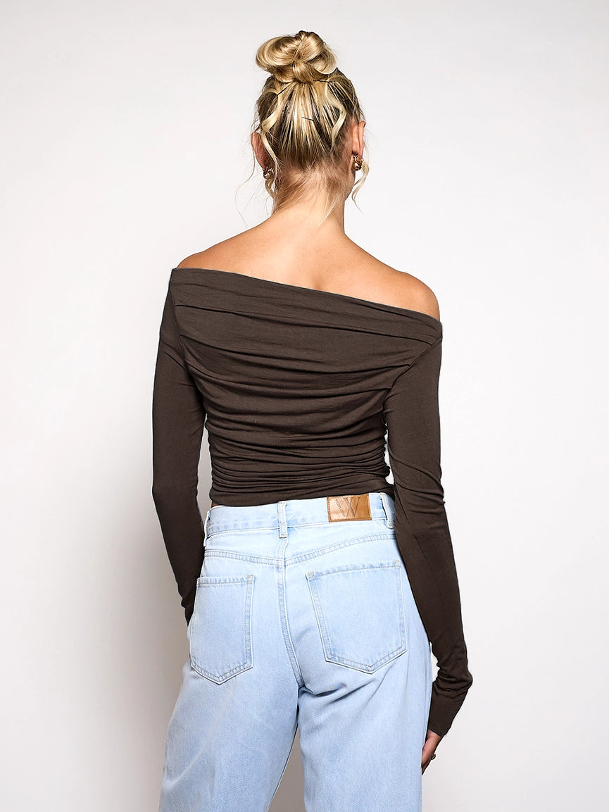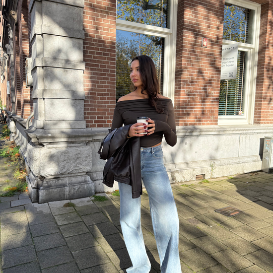 Lieke off shoulder top | Tall | Donkerbruin