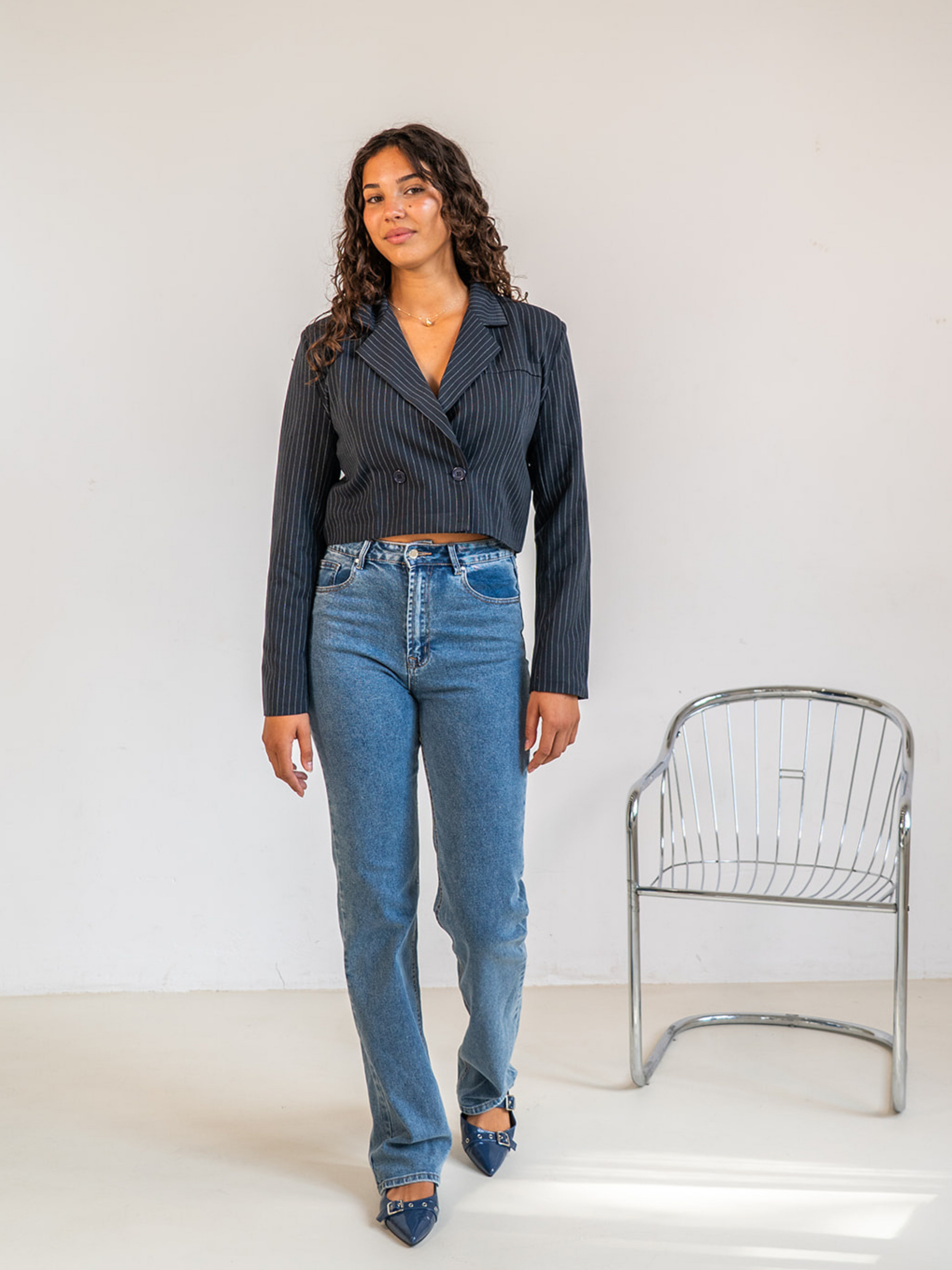 Deze donker blauwe Tall Straight Leg Jeans heeft veel stretch en is de perfecte jeans voor je everyday look! Het is een super high waist tall model. Ben je lang? We got you! Deze broek kun je dragen van 1.75 tot 2.00m (verkrijgbaar in 2 lengtematen).