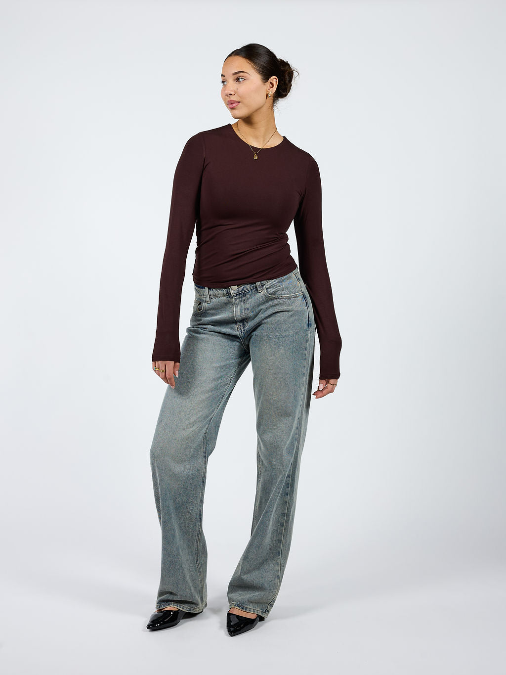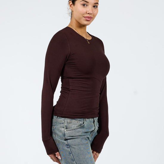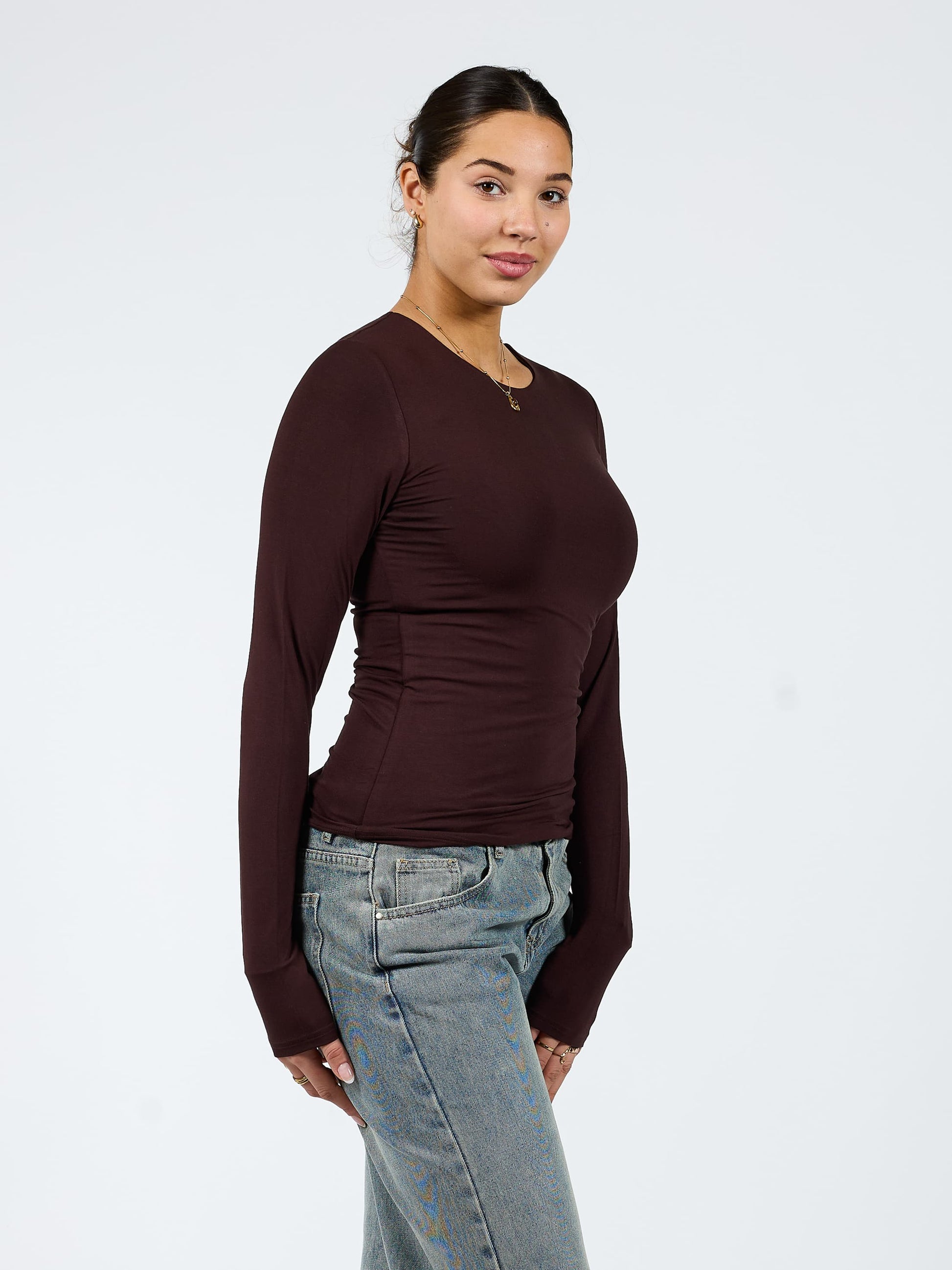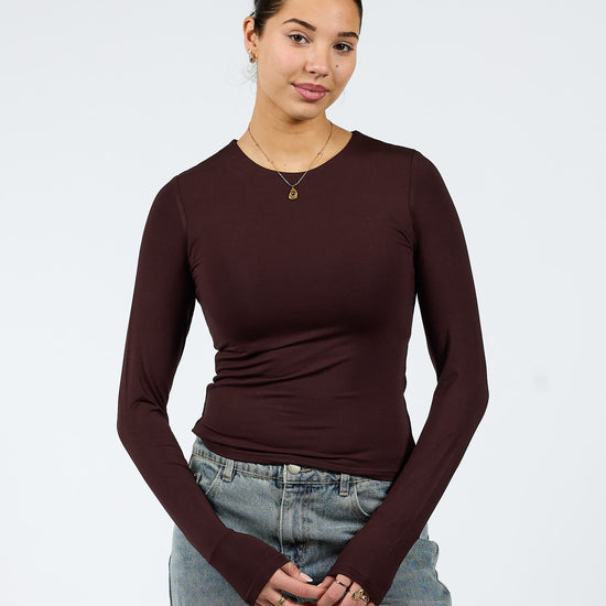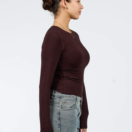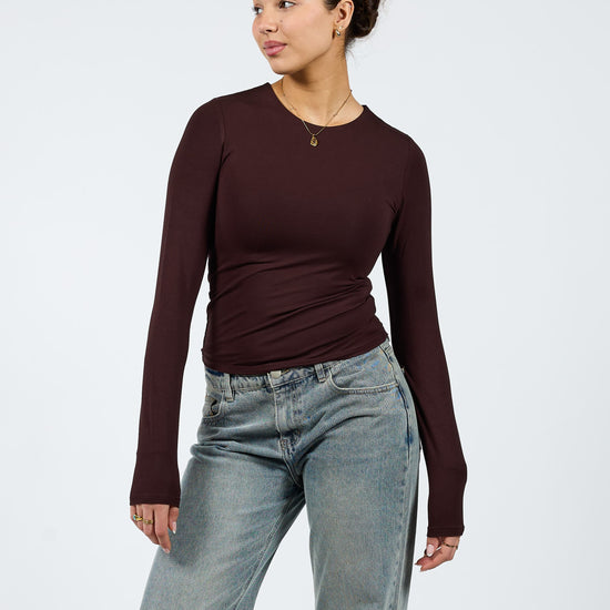 Liza long sleeve top | Tall | Donkerbruin