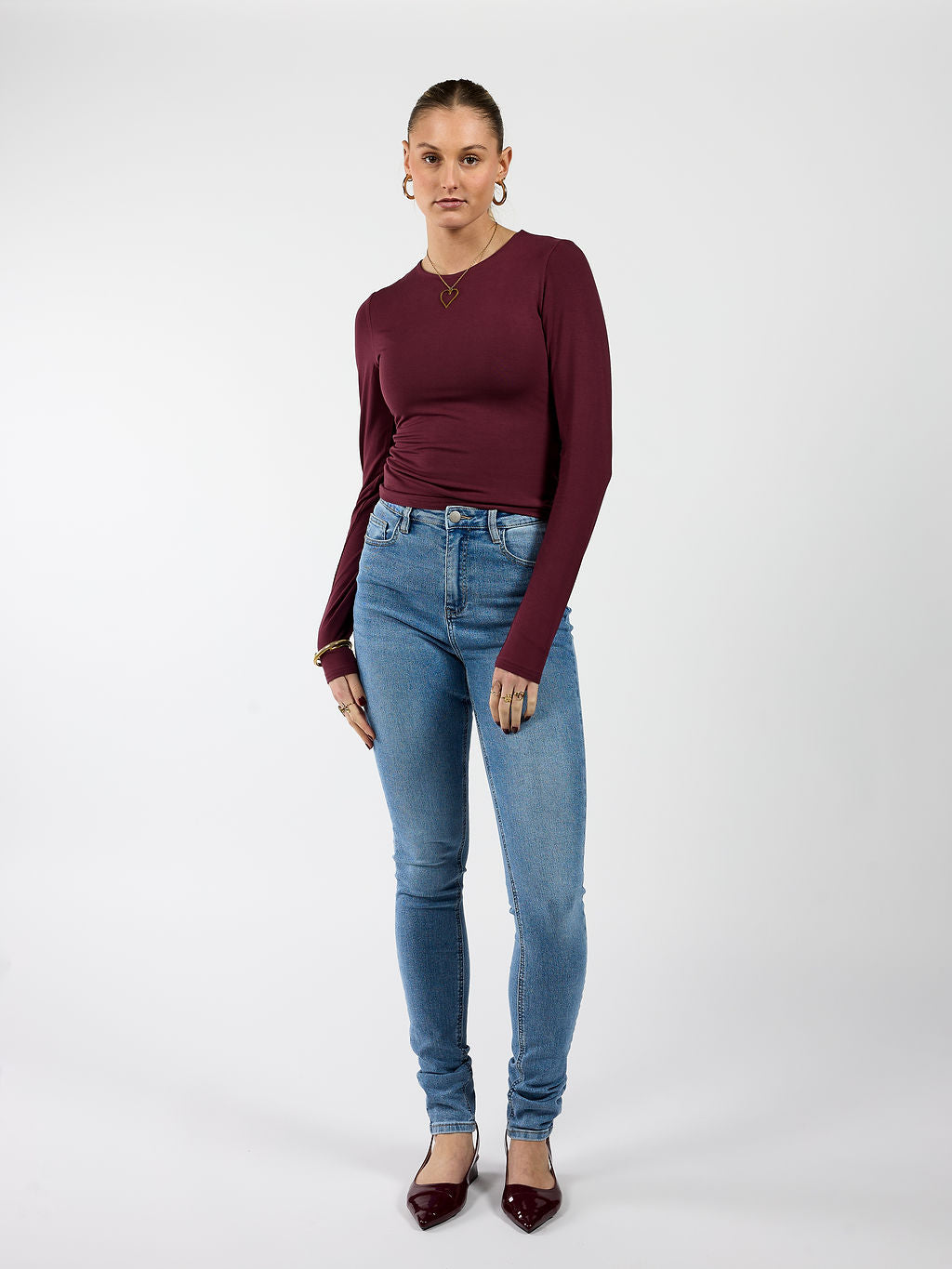 Liza long sleeve top | Tall | Bordeaux
