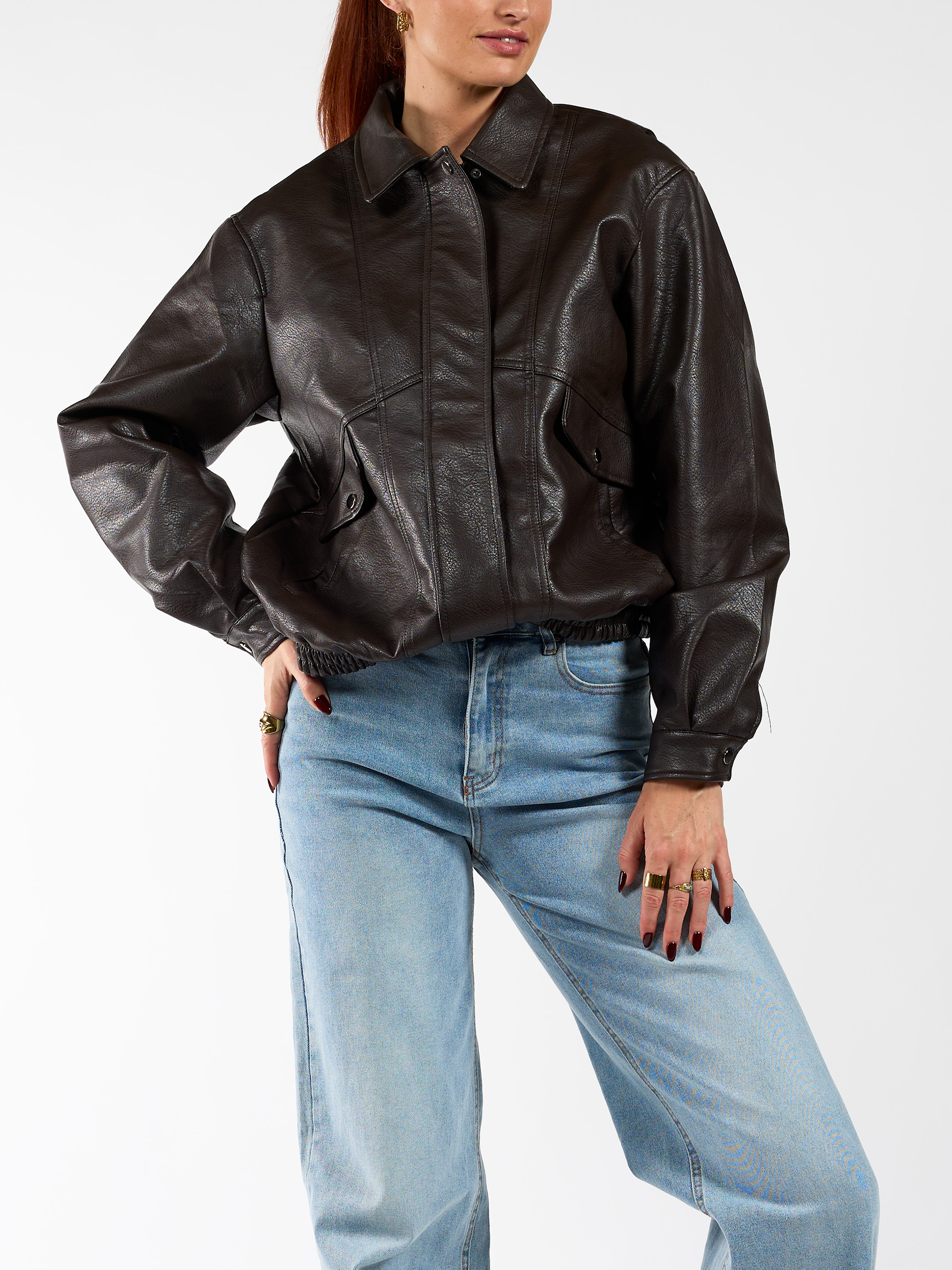 De Loua Leather Jacket is een stoere eyecatcher voor tall girls. Dit leren jasje heeft een oversized fit, extra lange mouwen en een elastische tailleband aan de onderkant die zorgt voor een mooie pasvorm. De zakken geven het jasje een edgy look en maken hem niet alleen stijlvol maar ook praktisch. Verkrijgbaar in donkerbruin, zwart en bordeaux rood zodat je altijd de perfecte match vindt voor jouw stijl. Een tijdloos item dat iedere outfit naar een hoger level tilt!