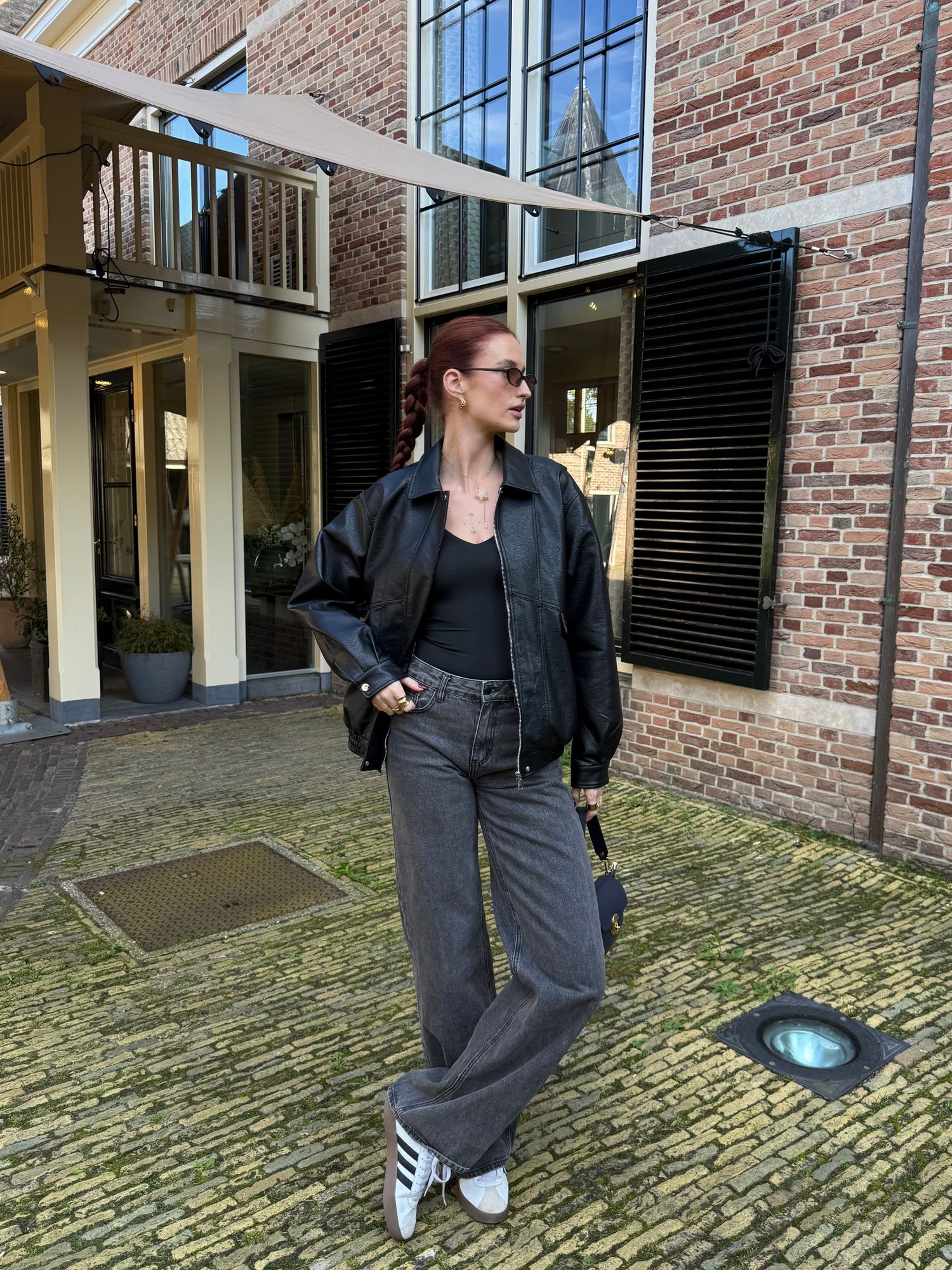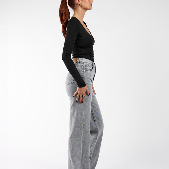 Jade Super Wide Leg Jeans | Mid-waist | Dark grey |