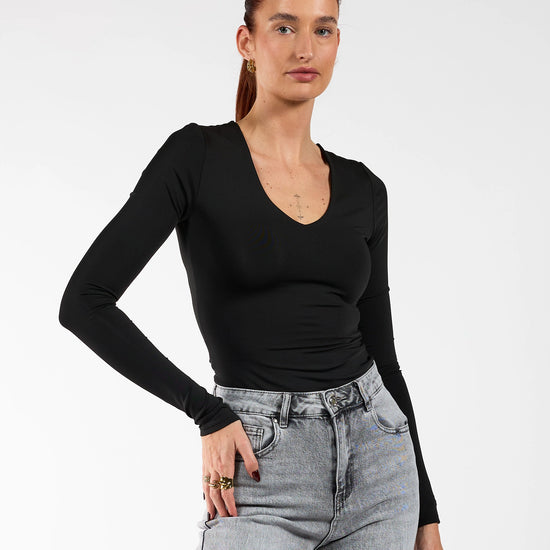 De Lovi V-Top is een essential voor tall girls die houden van comfort en stijl. Deze long sleeve top met V-hals is dubbelgevoerd, waardoor hij mooi aansluit en niet doorschijnt. Dankzij de mega stretchy en snatchy fit valt hij flatterend en comfortabel tegelijk. De semi-cropped lengte en extra lange mouwen maken hem perfect voor lange meiden!