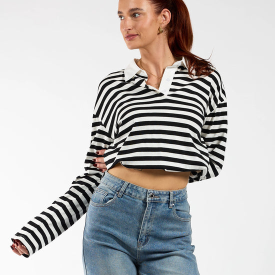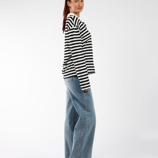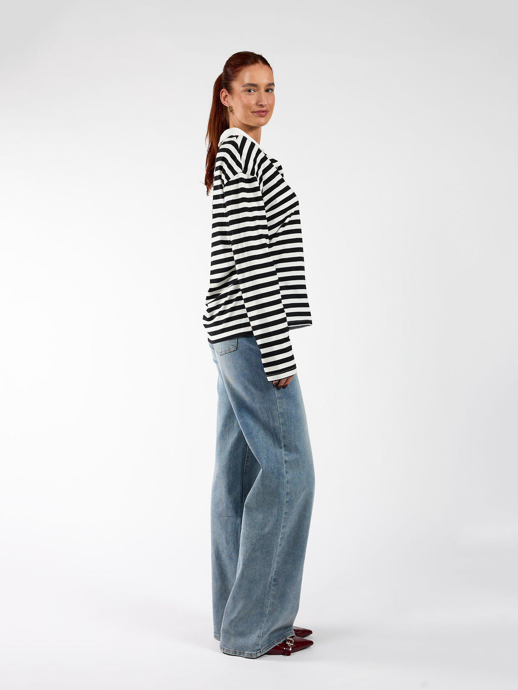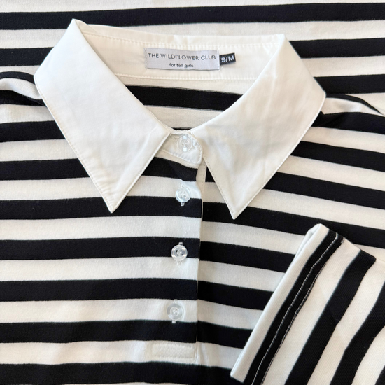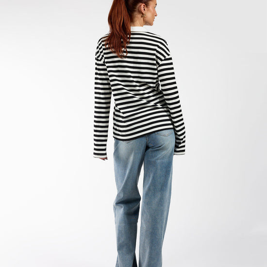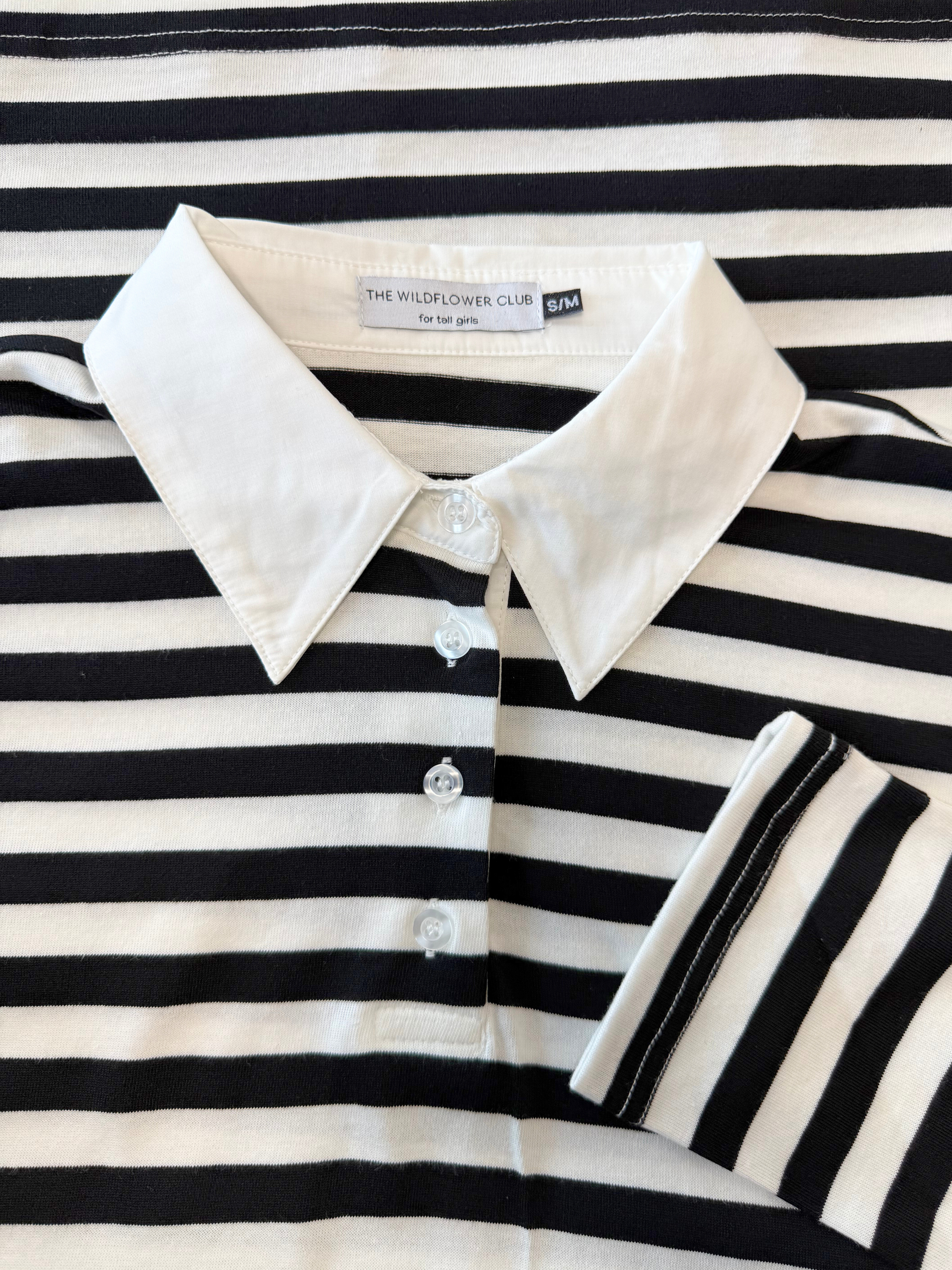 Deze zwart wit gestreepte tee is een must-have voor jouw tall wardrobe. Het shirt is gemaakt van een zachte, comfortabele stof en heeft extra lange mouwen.
