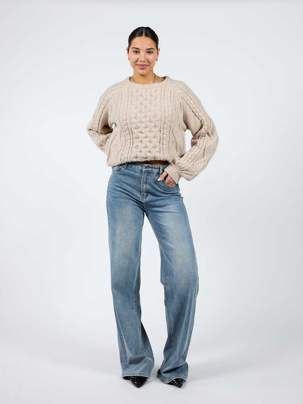 Je combineert de Mira Cable Knit met een pantalon, jeans of maxi skirt voor een effortless fall outfit die altijd goed zit! 💕