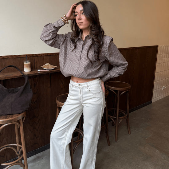 Noah blouse | Bruin geruit | Tall