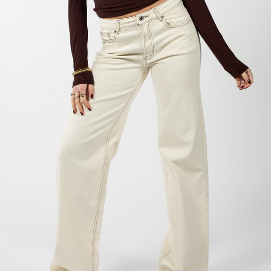 Mira | Super Wide Leg Jeans | Cream | Stretch | Tall