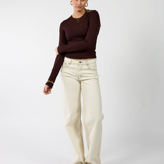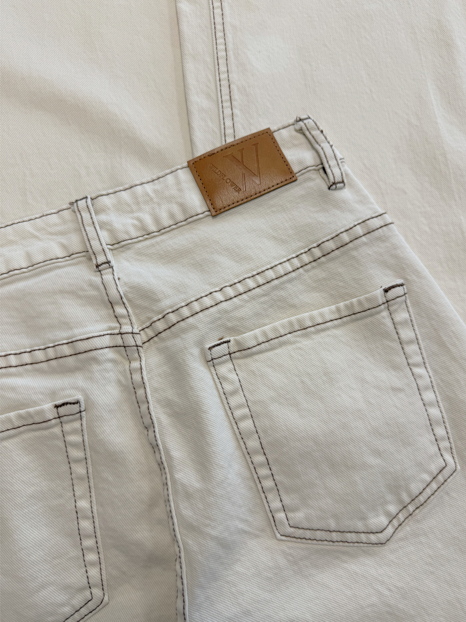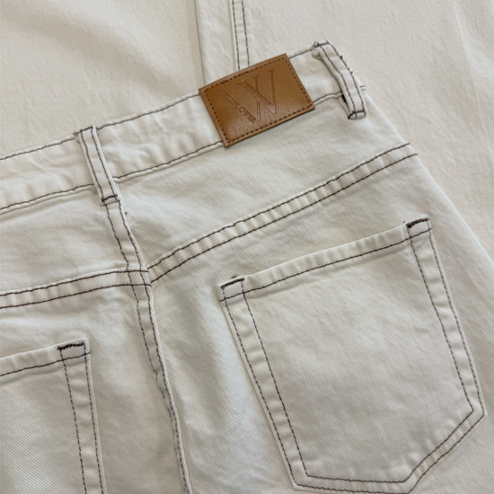 De Mira Low Waist Super Wide Leg Jeans is dé musthave voor het voorjaar. De frisse cream kleur geeft je outfit een lichte, zachte uitstraling, terwijl de bruine stiksels zorgen voor een trendy contrast en een speels detail. De lage/mid waist taille en extra wijde pijpen geven de jeans een nonchalante vibe die helemaal on trend is!