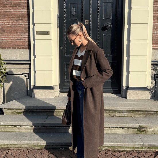 Trend alert! Deze lange manteljas maakt je outfit helemaal af. De warme kleur en super zachte stof geven je meteen een cozy gevoel, waardoor je dit item nooit meer uit wilt doen. De jas heeft een comfortabele oversized fit en valt extra lang, zowel in lengte als in de mouwen, perfect voor tall girls!