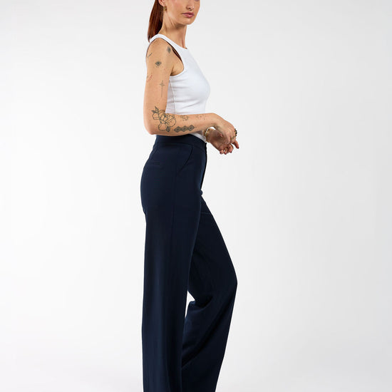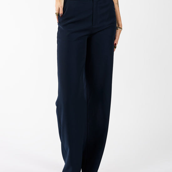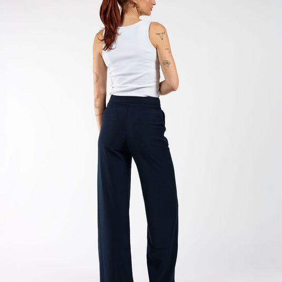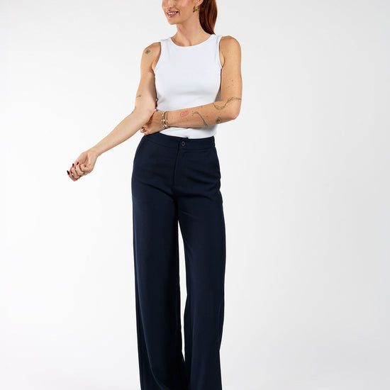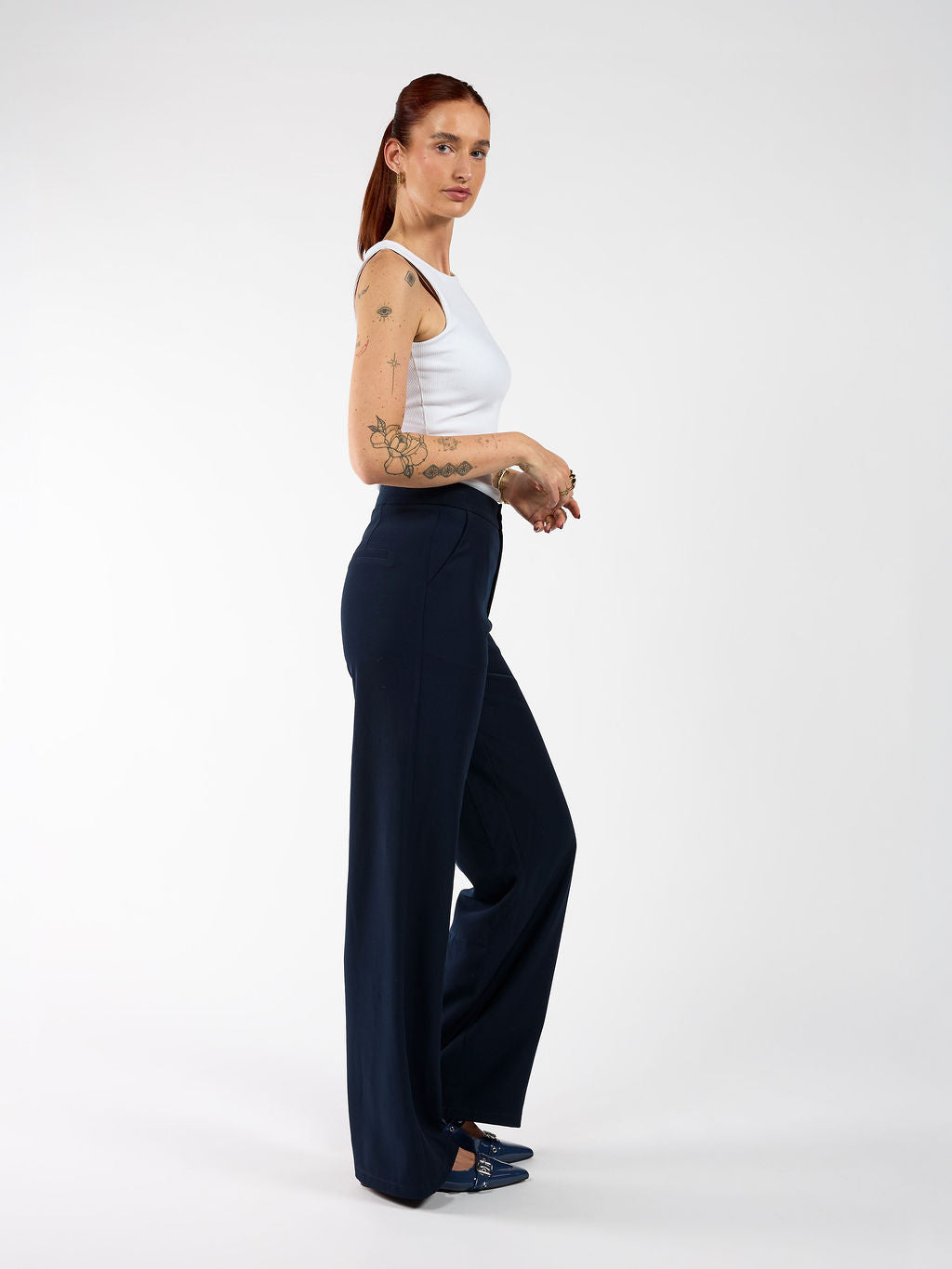 Nova | Wide leg pantalon met knoop | Navy | Tall