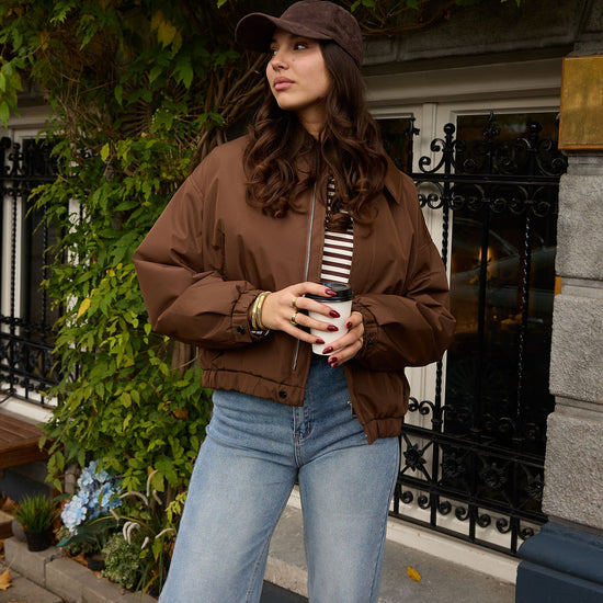 Kies jouw vibe in drie tijdloze kleuren: bruin, khaki en navy. Makkelijk te combineren met jeans, pantalon of een jurk.