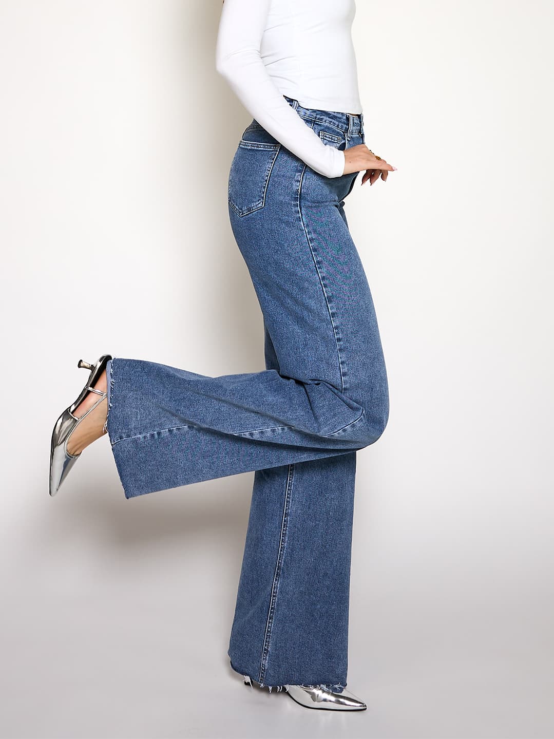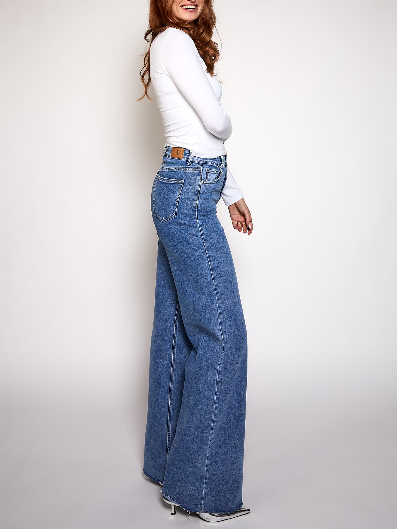 De Sassy Super Wide Leg Jeans in stretch blauw zijn dé ultieme must-have voor lange meiden die op zoek zijn naar een comfortabele én stijlvolle jeans. Met een high waist en een super wide leg pasvorm bieden ze niet alleen een trendy look, maar ook de perfecte lengte voor vrouwen vanaf 1.75m tot 2.00m. De tall spijkerbroek is verkrijgbaar in lengtemaat 36 en lengtemaat 38.