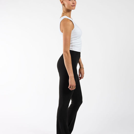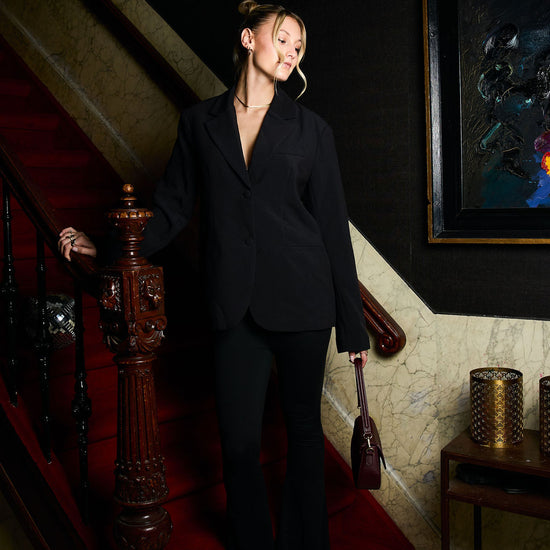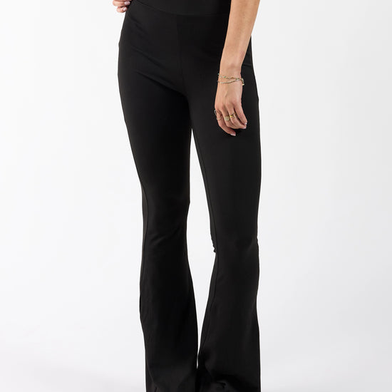 Onze tall flared pants is de perfecte basis voor elke outfit van lange meiden. De broek heeft een high waist fit, zit supercomfortabel dankzij de elastische tailleband en is gemaakt van een lichte, glanzende stretchstof die mooi aansluit op het lichaam. De flared pijpen zorgen voor een elegante, lange look en maken de broek geschikt voor zowel casual als classy momenten. De flared pants is verkrijgbaar in lengtemaat 36 & 38 en speciaal gemaakt voor tall girls.
