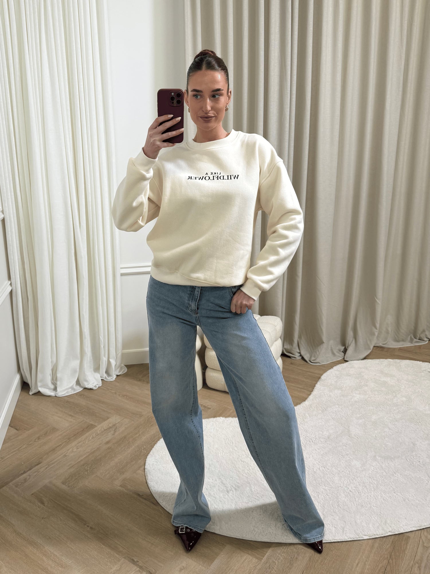 Your new fave sweater just dropped! De Like a wildflower sweater is dé musthave voor alle TALL girls die houden van comfy vibes en een stijlvolle look. Deze zachte cream sweater heeft een oversized fit en extra lange mouwen, speciaal ontworpen voor tall girls!