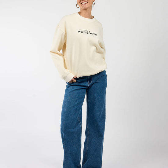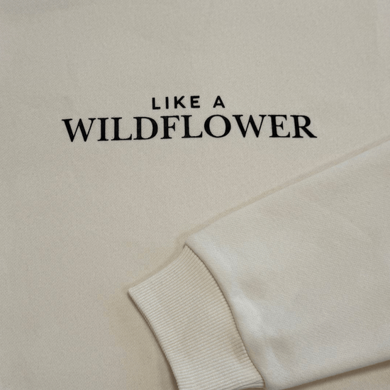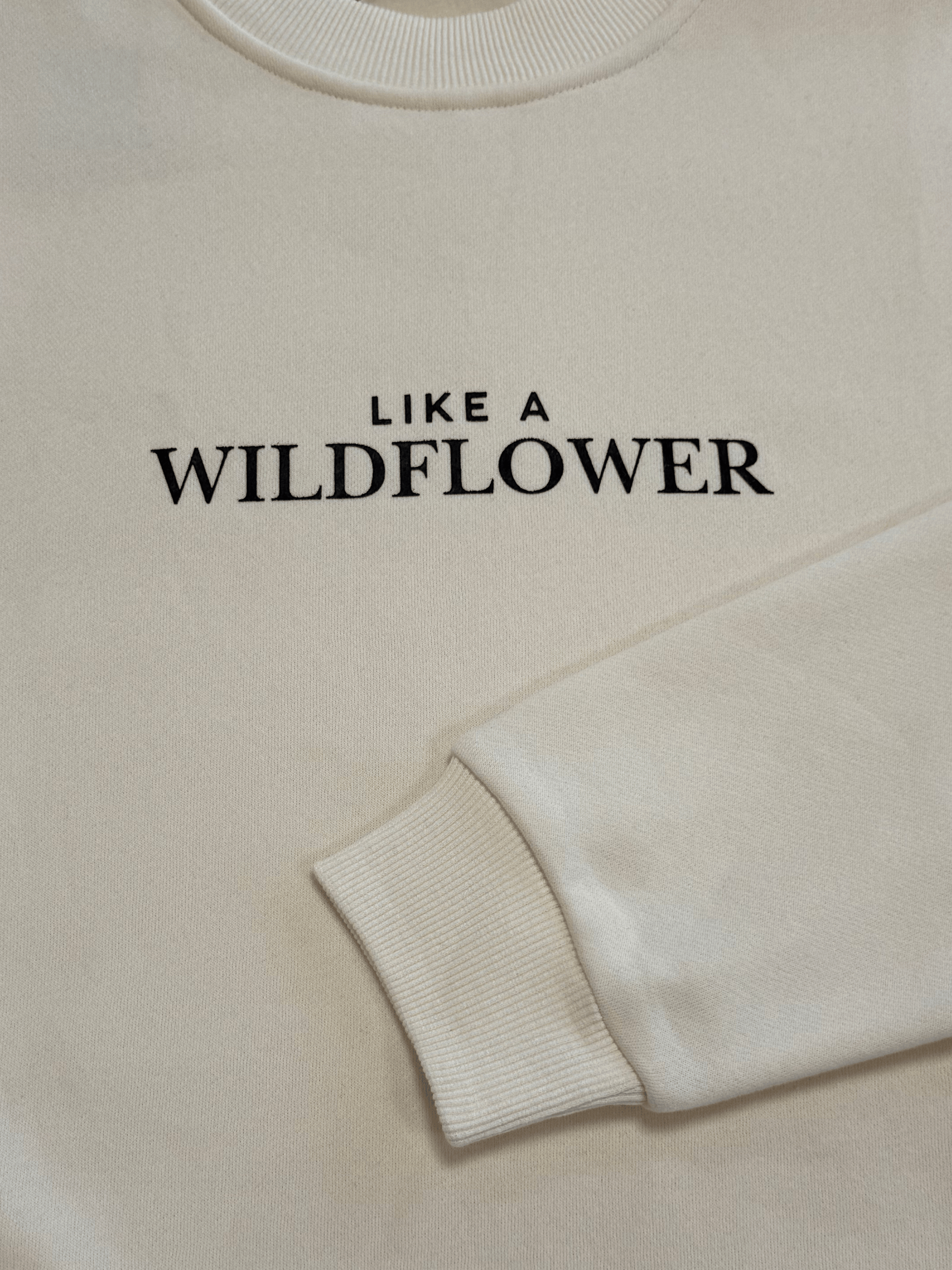 De zwarte opdruk met "LIKE A WILDFLOWER" geeft een speelse touch aan deze minimalistische essential. Perfect te combineren met een jeans, shorts of comfy joggers.